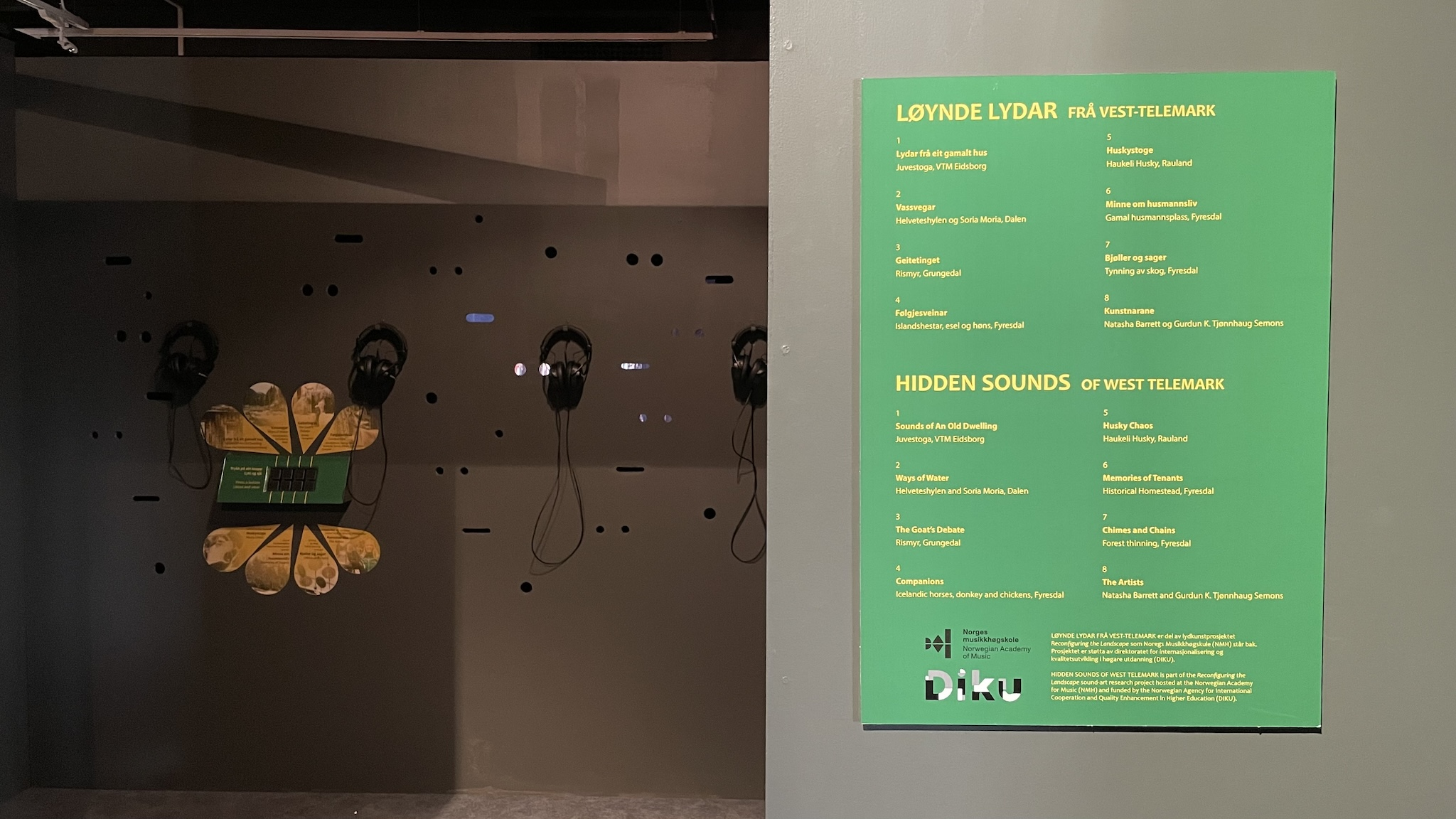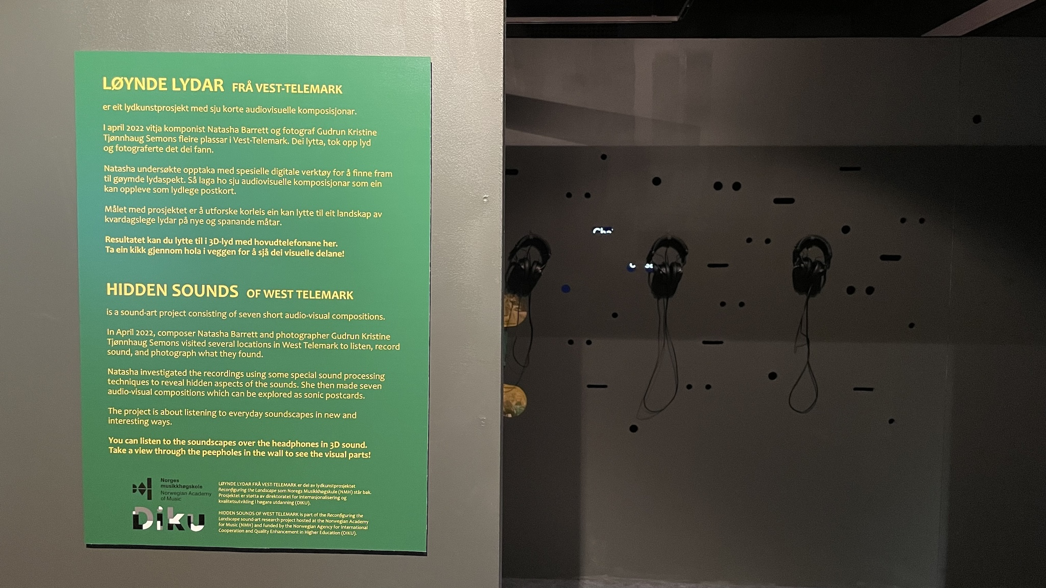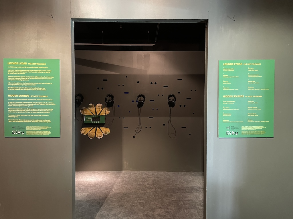 "Hidden Sounds of West Telemark / Løynde Lydar Frå Vest-Telemark" was exhibited at West Telemark Museum during the 2023 season. In addition to the artistic research grant from the Norwegian Agency for International Cooperation and Quality Enhancement in Higher Education (DIKU), the work was supported by West Telemark Museum. Special thanks to the advice, input and work of Tilman Hartenstein at West Telemark Museum.