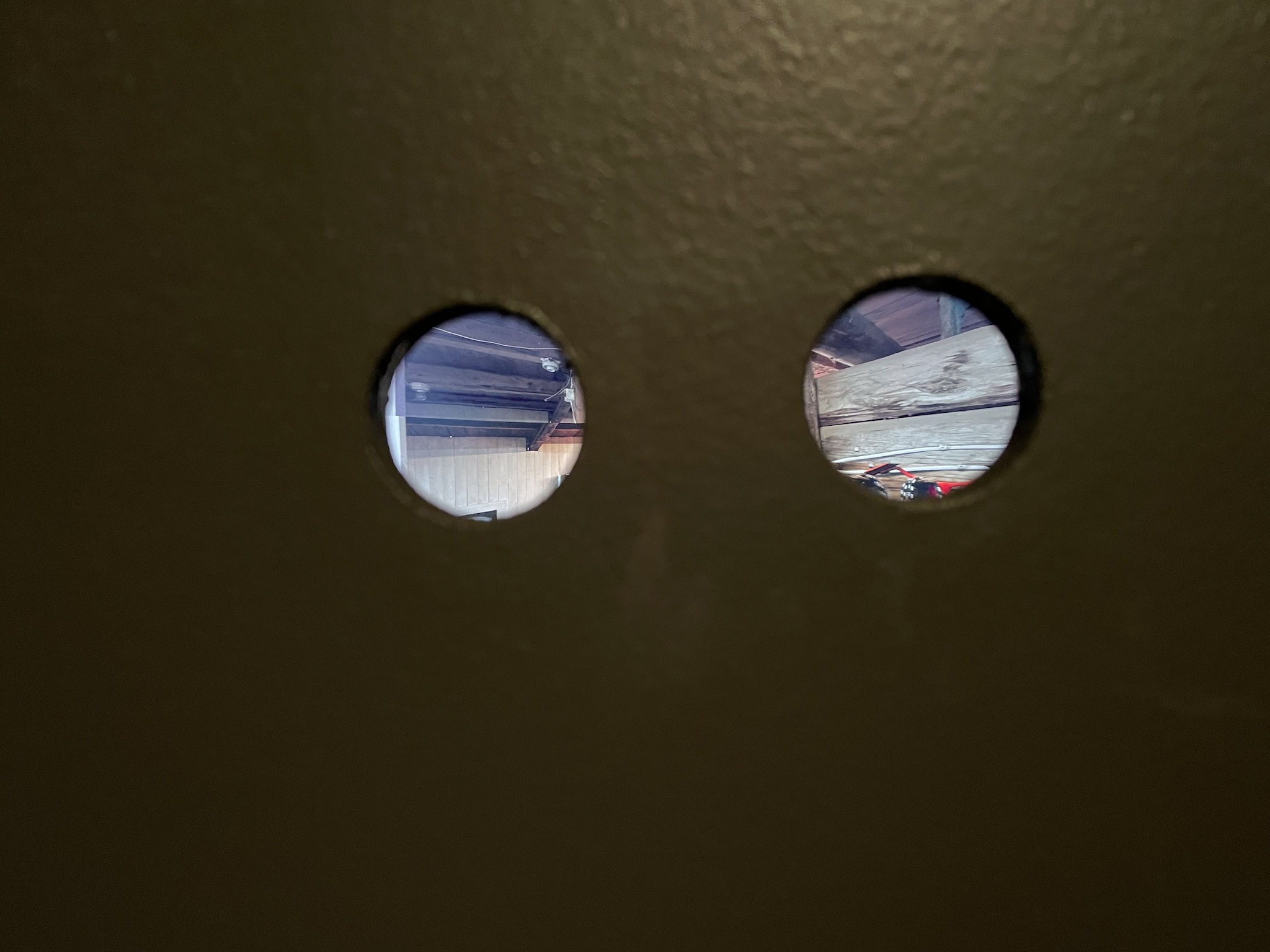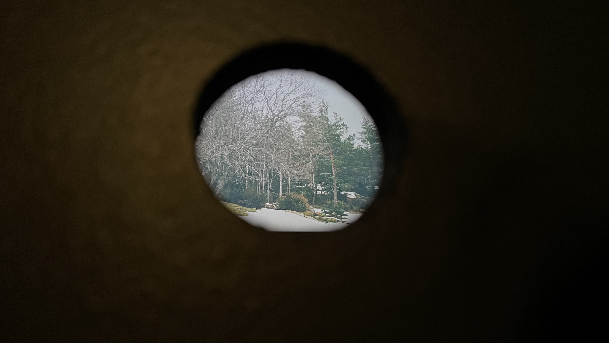 - To transform the experience into an explorative process, where many of the peepholes do not reaveal the complete visual image. Moving one's head slightly becomes necessary to explore the entire visual field.