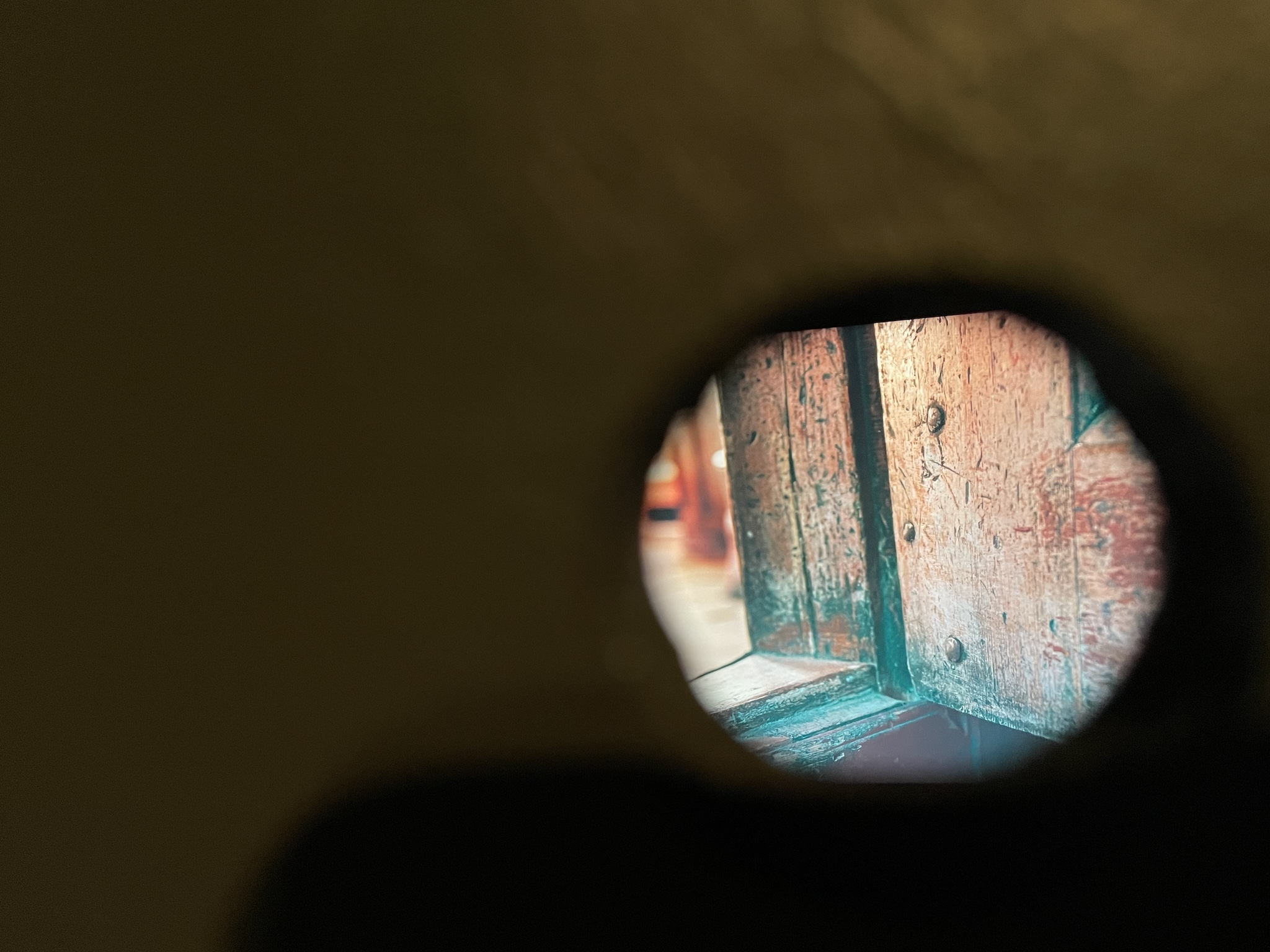 The work is primarily about sound, and the peepholes serve multiple functions: