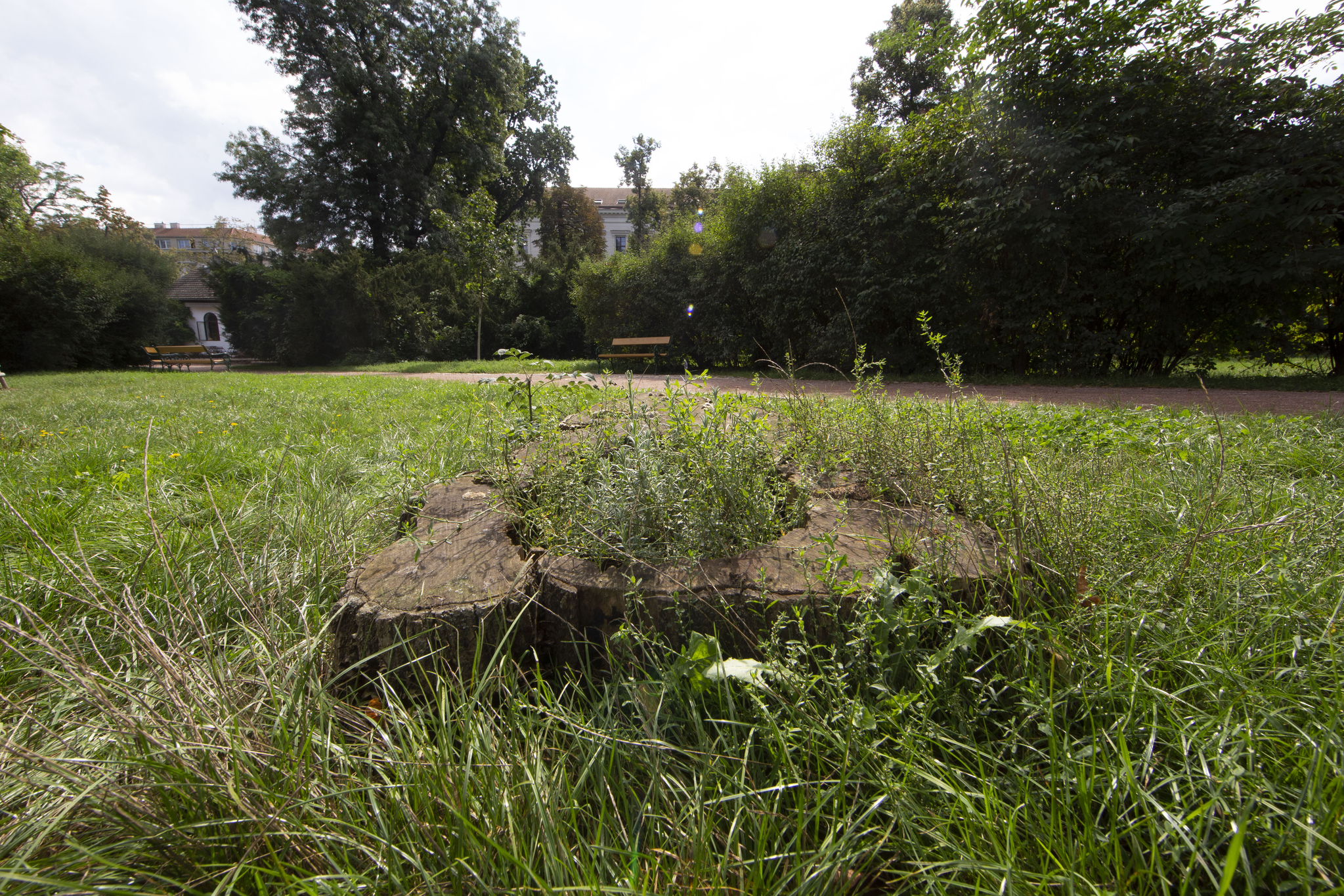 Guerrilla gardening makes it possible to trace the diverse goals and motivations behind the individual actions of gardeners. Cultivating plants or other making other gardening interventions that take place in a “no-man’s-land” (or maybe a “no-woman’s-land”) may be driven by a desire to aestheticize the surroundings, to use an “unused” space, to carry out environmental or political goals, etc. If nothing else, guerrilla gardening is a potentially adventurous and creative endeavor, especially because it is situated in a kind of gray area of legality. It stands outside institutional structures and thus requires discovering and creating untrodden paths, looking at the space around oneself "differently." Such an adventurous approach to guerrilla actions has been taken by a local group of friends who, during their irregular nocturnal gardening interventions, transformed several tree stumps in Brno's Lužánky Park into flower pots. In these pots, they grew selected plants with varying degrees of success. Like many of their (and not only their) guerrilla ventures, this one is marked by its fragile, temporary nature, which stems primarily from the absence of a wider (institutional or other) network of care that usually surrounds and sustains urban plant life. When such care is only provided by individuals, the likelihood increases that the plants (which are particularly vulnerable in urban environments) will fade or wilt. The spatiotemporal instability typical of human beings – going on vacation, moving from place to place, getting involved in different relationships and schedules – often leads to the abandonment of cultivated areas. Still, life in these areas carries on.