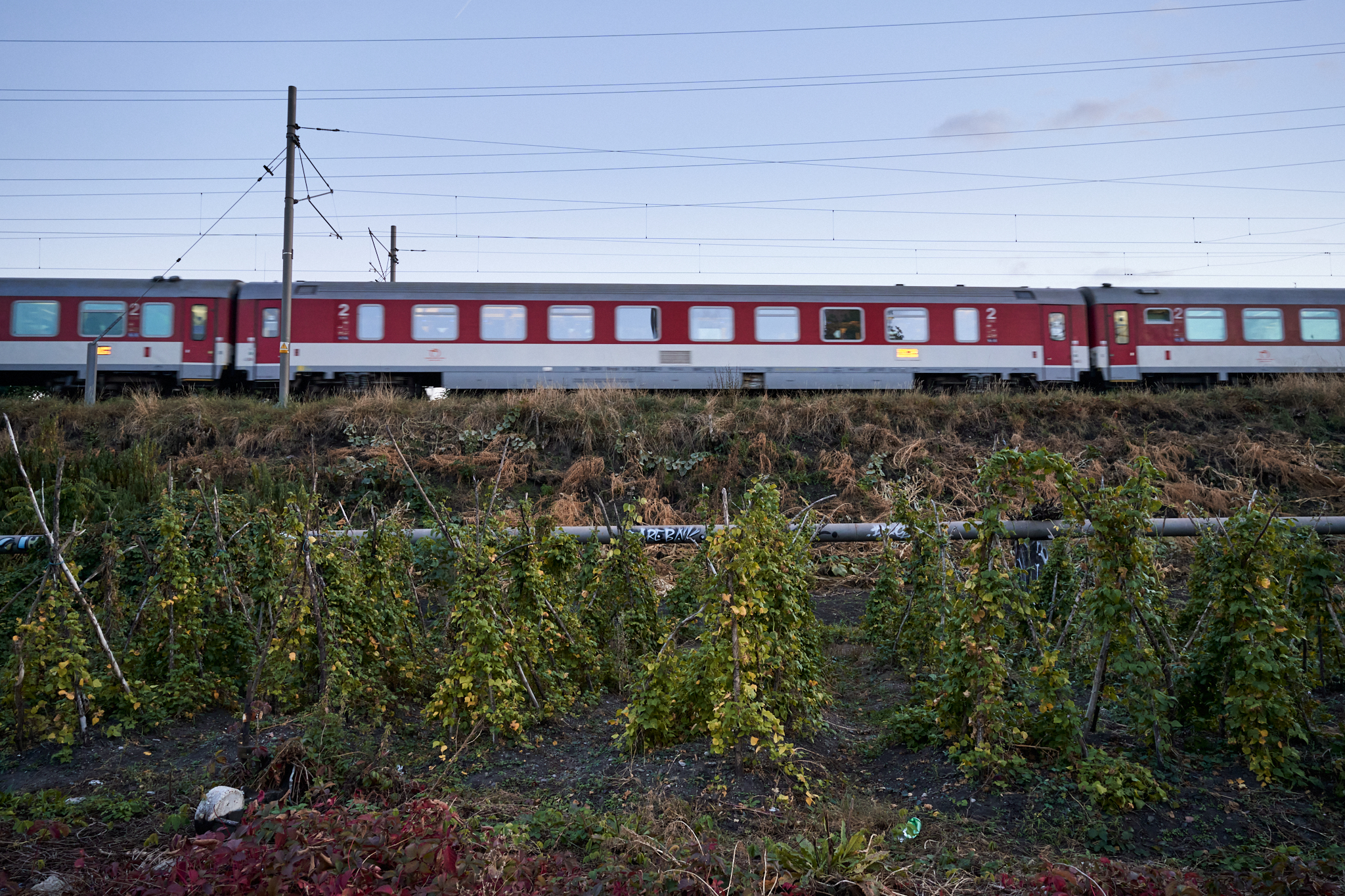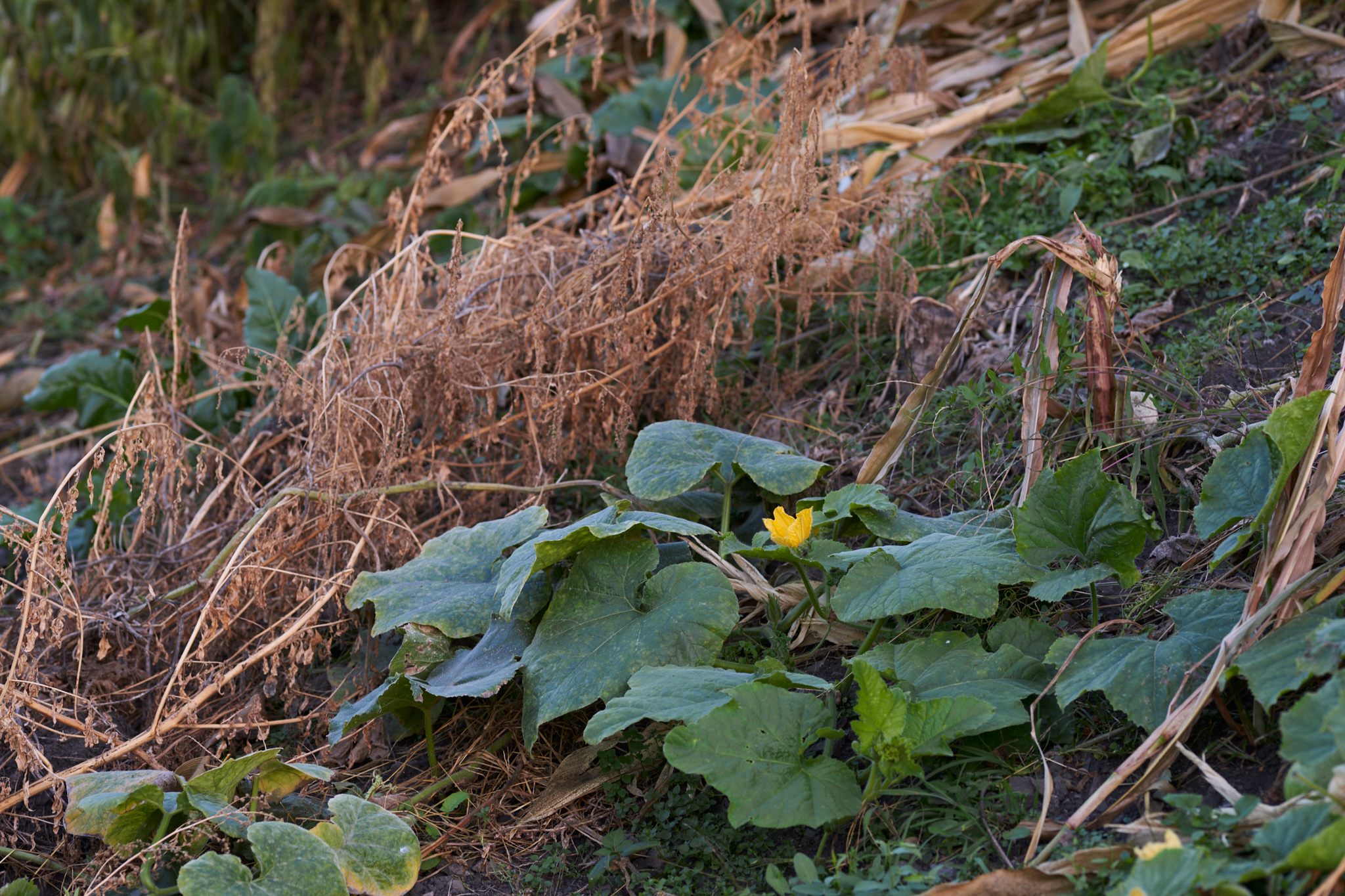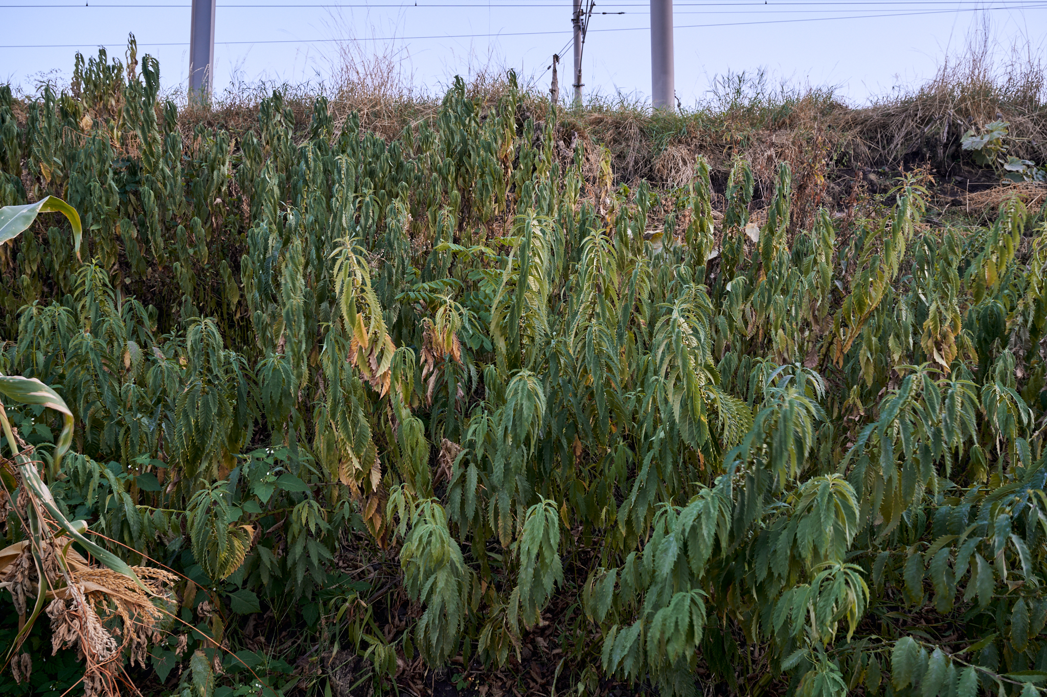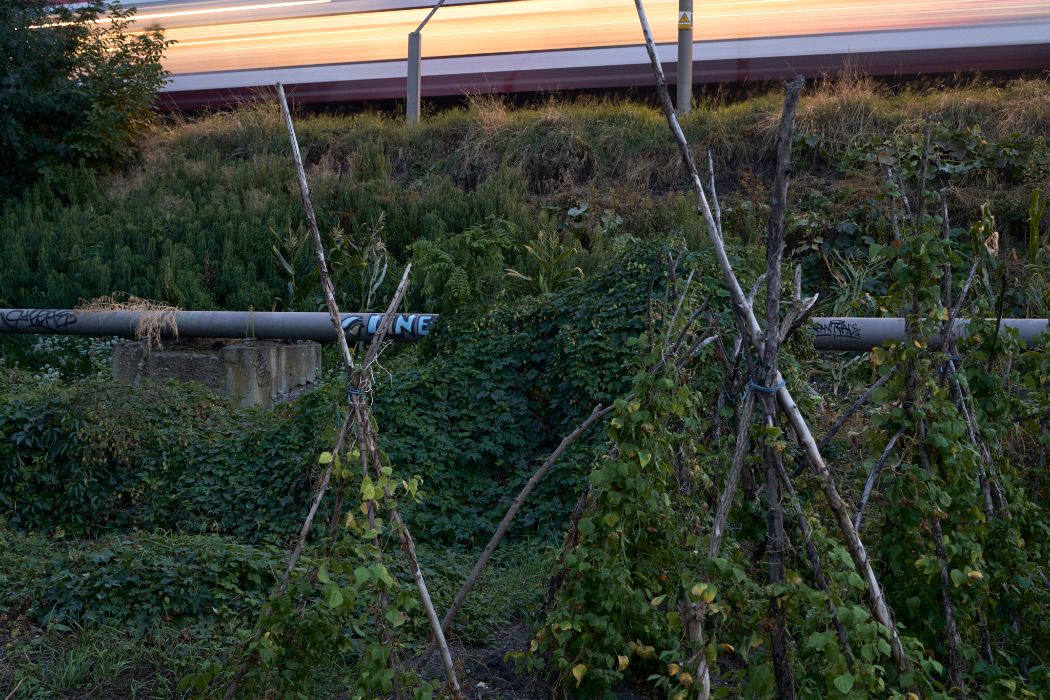 This is a strictly productive garden, where yields are maximized through extremely efficient permaculture methods. Strawberries, garlic (allium sativum), and daylilies (they’re edible, did you know that?) grow between the corn stalks and gypsywort spreading out along the railway embankment. The gardeners grow beans of uncommon varieties, herbs for seasoning, lettuce, even a loquat tree. Aerial maps show that the garden has been in existence for about ten years.