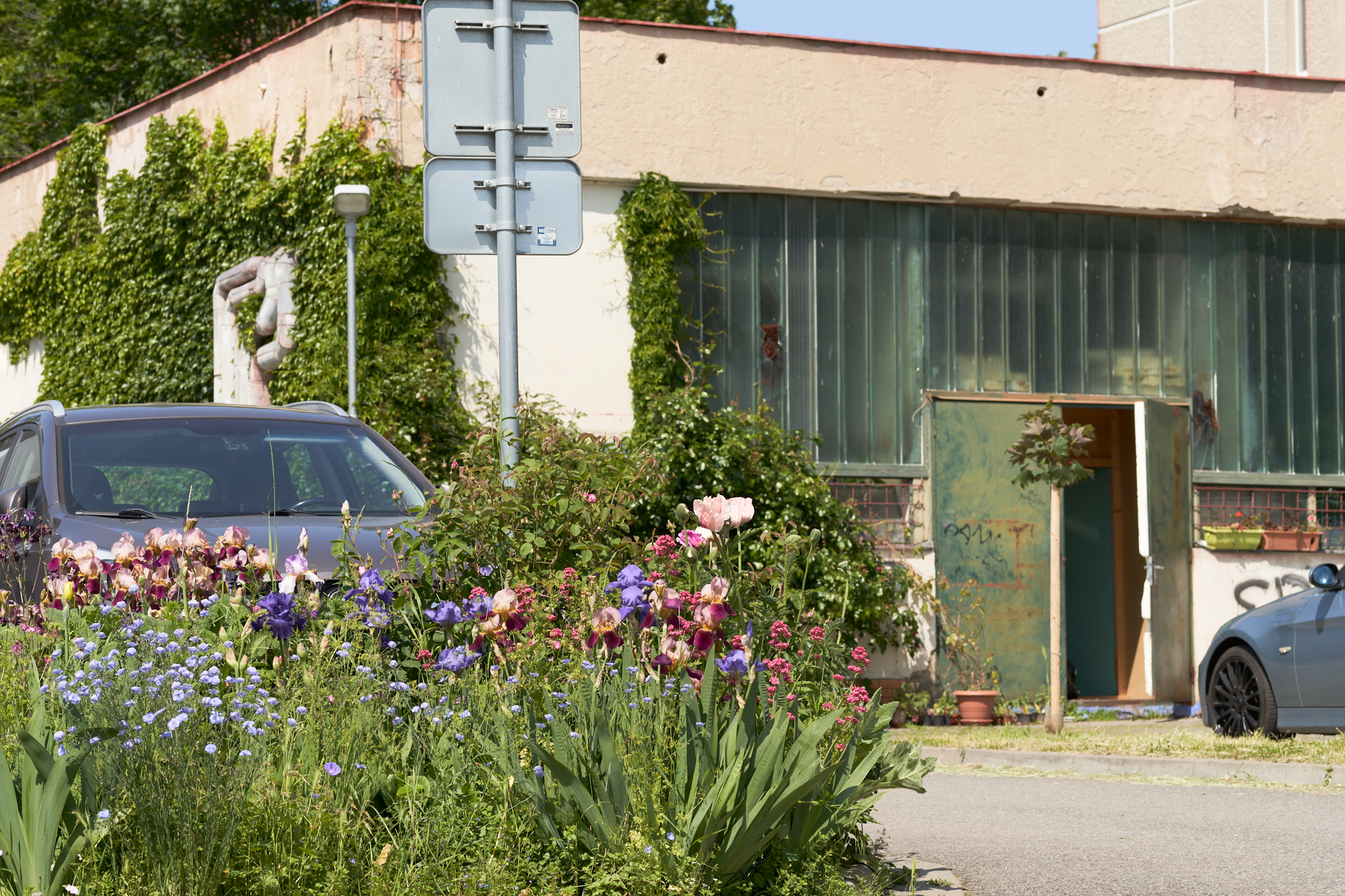 Before the space directly in front of my studio was rebuilt into a parking lot, I cultivated a small garden composed of wild grasses and a semi-formal flower bed. (I did it guerilla-style, just taking over the space gradually.) Before the reconstruction, I even organized a public gathering in the place itself where I had invited people from the neighboring houses to see the plan of the reconstruction (which the city council did not care to publish online), to enjoy some music and cake, and to fill in a questionnaire in case they wanted to express their opinion of the plan of the reconstruction.