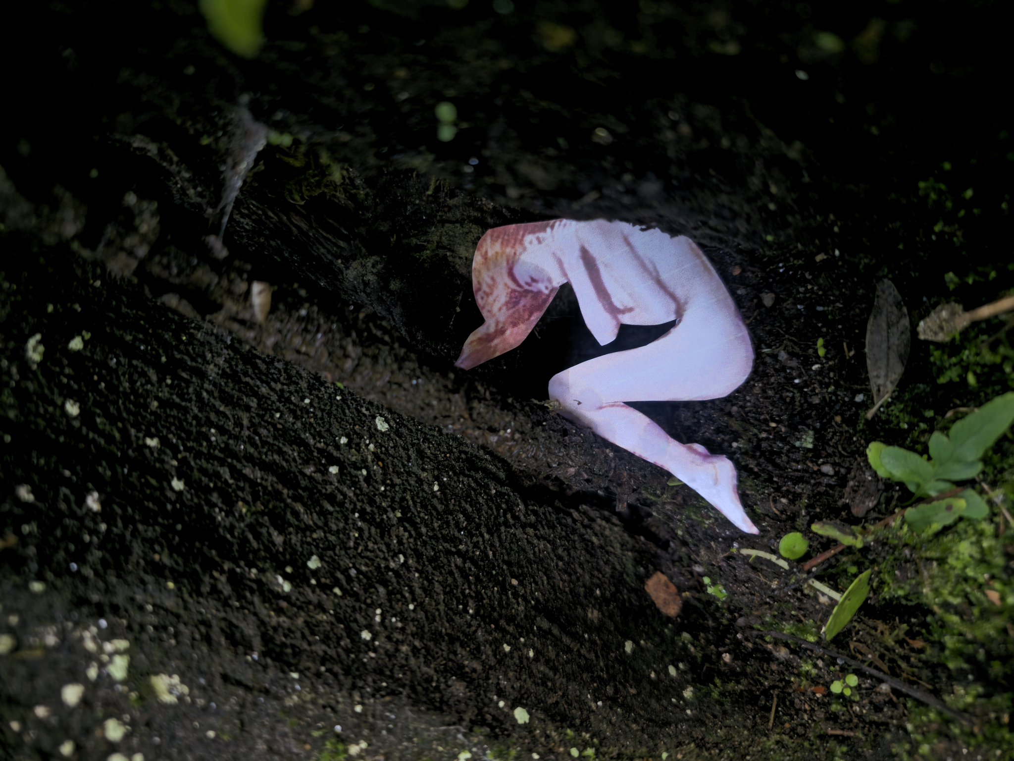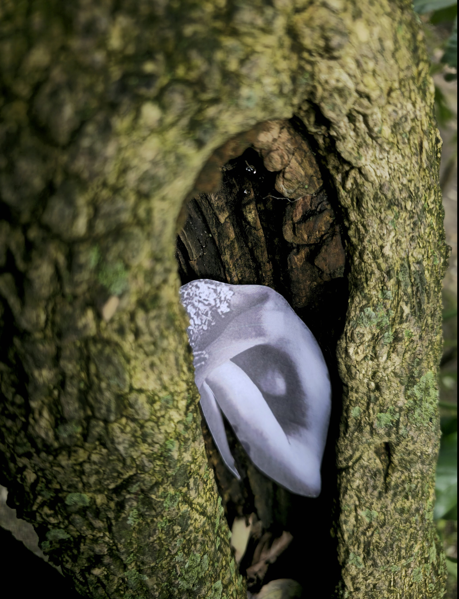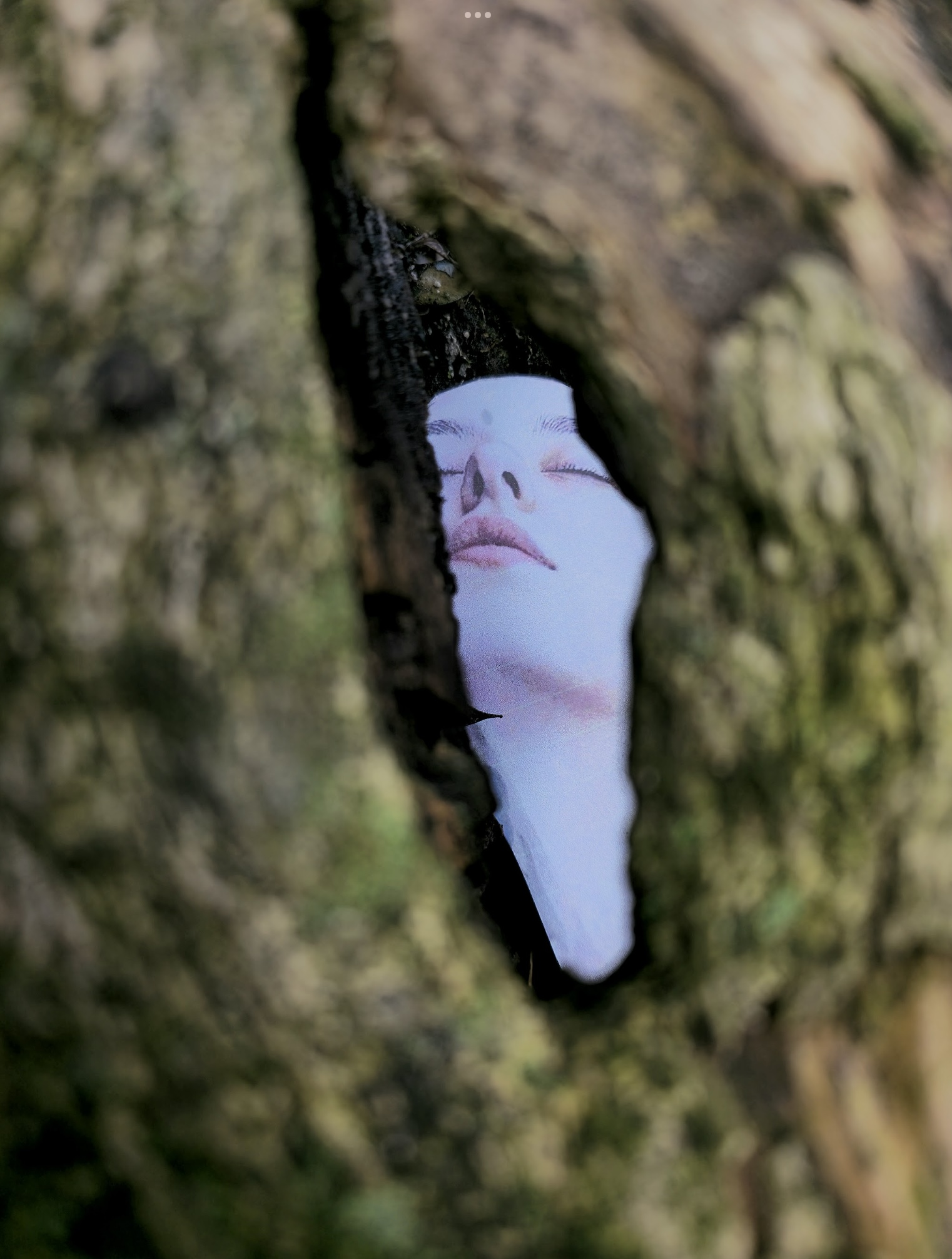 A partir do conceito da relação entre o corpo e o espaço natural, ôrganico, que se transforma constantemente, decidi procurar por espaços pequenos, buracos nas árvores e habita-los com pequenas figuras de corpos humanos recortadas.