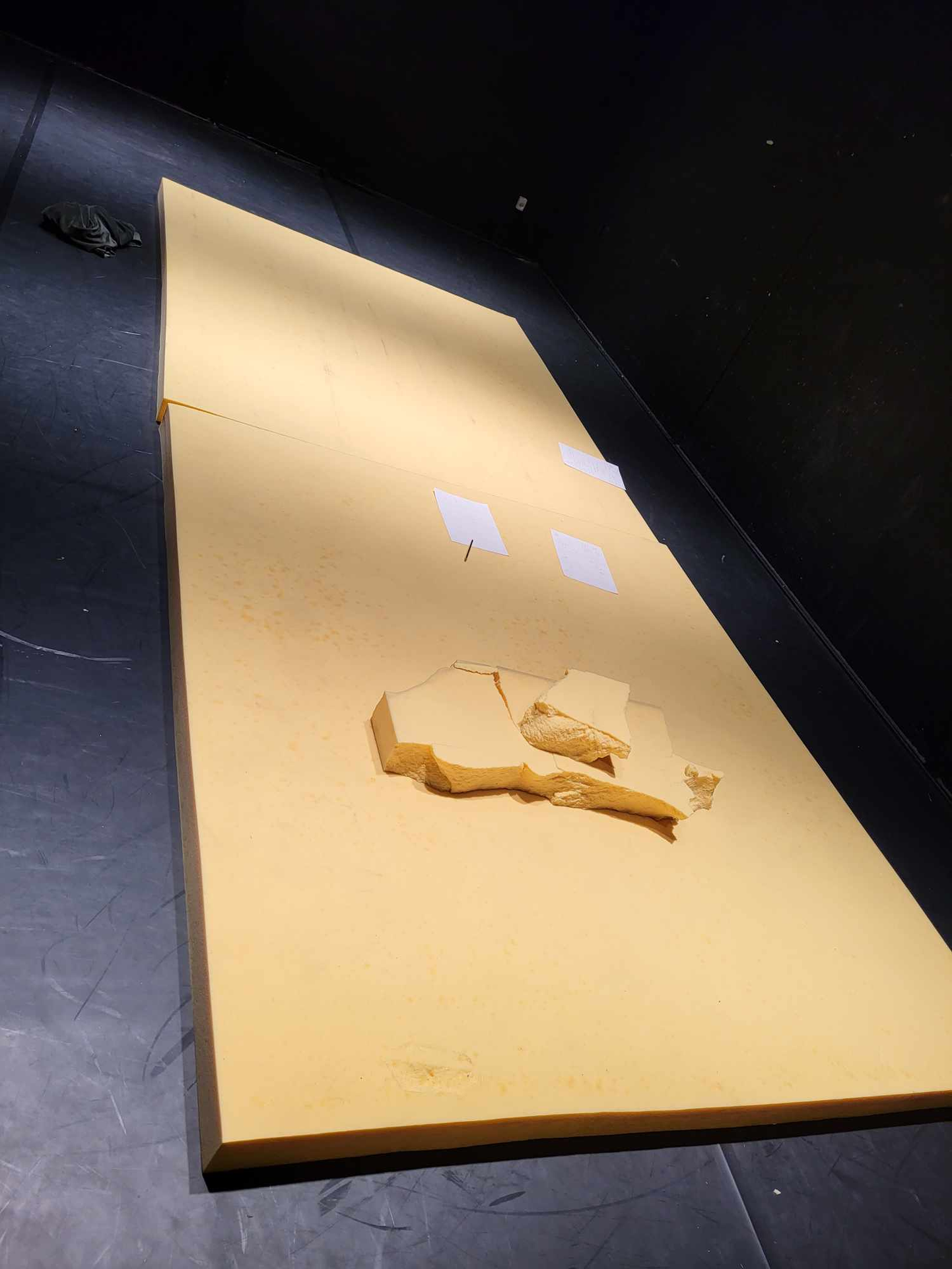 I took you from the cold, dark basement, separated you from the other matrasses, gave you a bumpy bike ride and brought you inside. You were positioned as a pile and as a flat surface. You slowly lost parts of yourself.