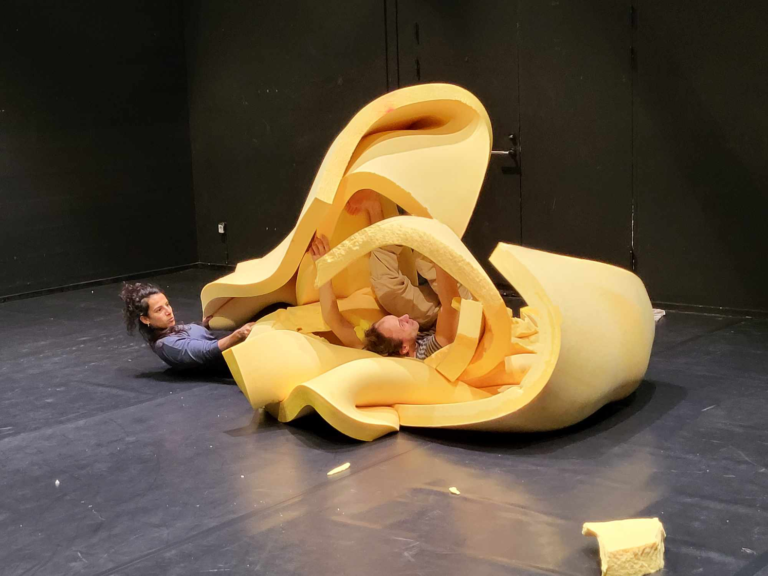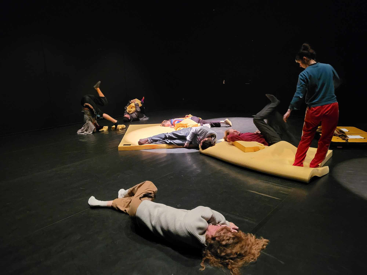 This research in the field of dance and participation grew out of an interest in the sensory experience of the audience. I was looking for a link between the experience of the performer and the experience of the audience. I came across articles on kinesthesia, empathy, choreography and audience experience. Meanwhile, I went into the studio with some dancers and a bunch of matrasses. On the last day we performed a score from these materials for a small audience. See the documentation of text, video, images and writings here.