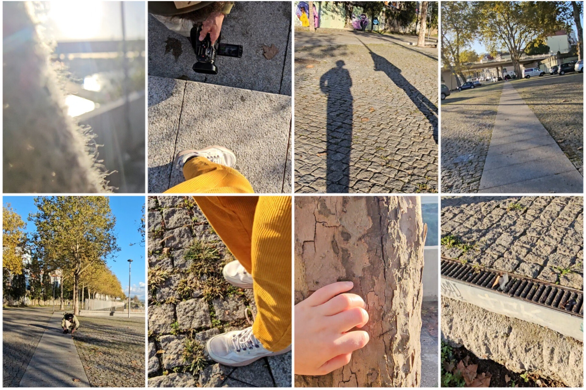 "Para esta primeira experiência de caminhar sem som, ou pelo menos uma tentativa de anular o som, ao máximo possível, foi algo super interessante. Nos ouvidos tinha tampões de esponja, e abafadores de escultura com algodão dentro para poder anular ainda mais todo o ruído da cidade. Logo à primeira vez, reparei que (...) por muito que anulemos, continuaremos a ouvir o som do respirar e do coração. Talvez nunca teremos a mesma experiencia que uma pessoa surda (...)"