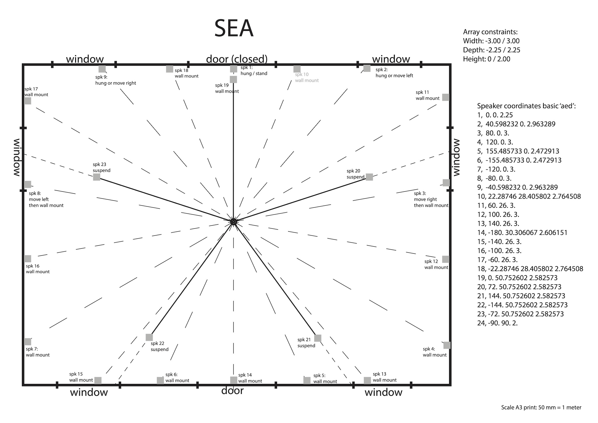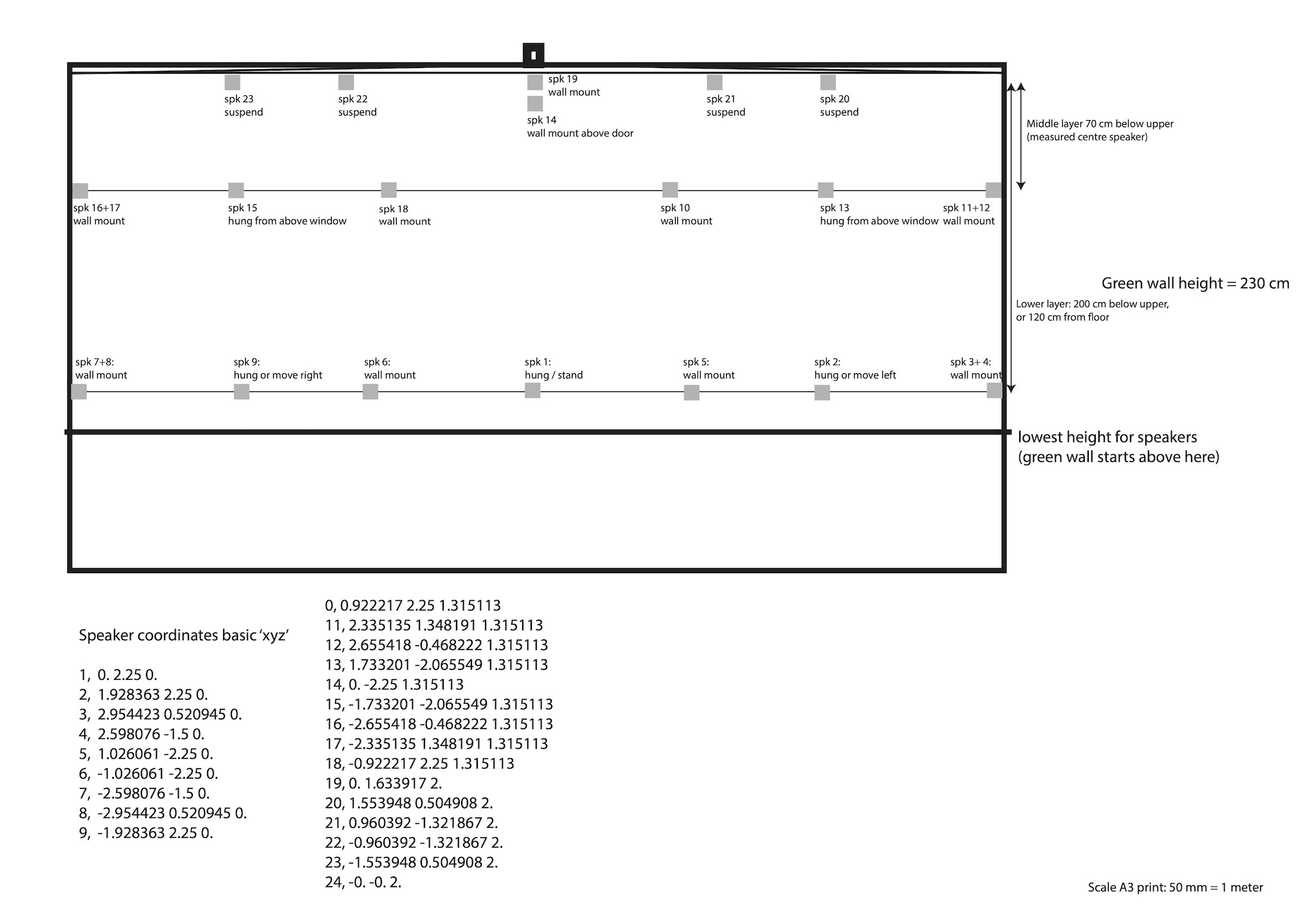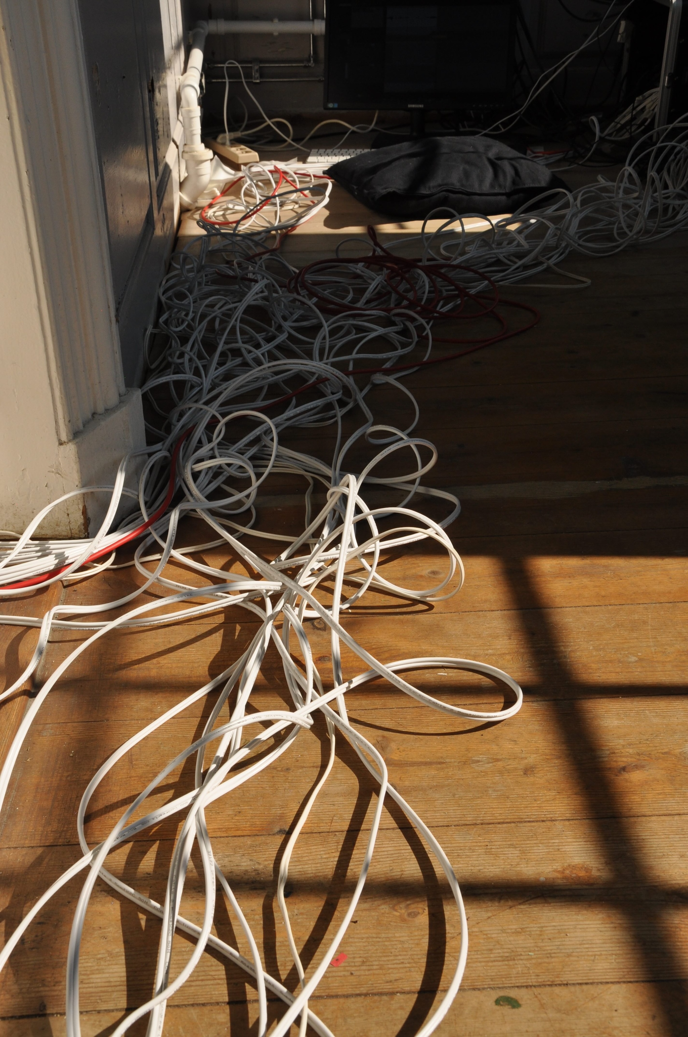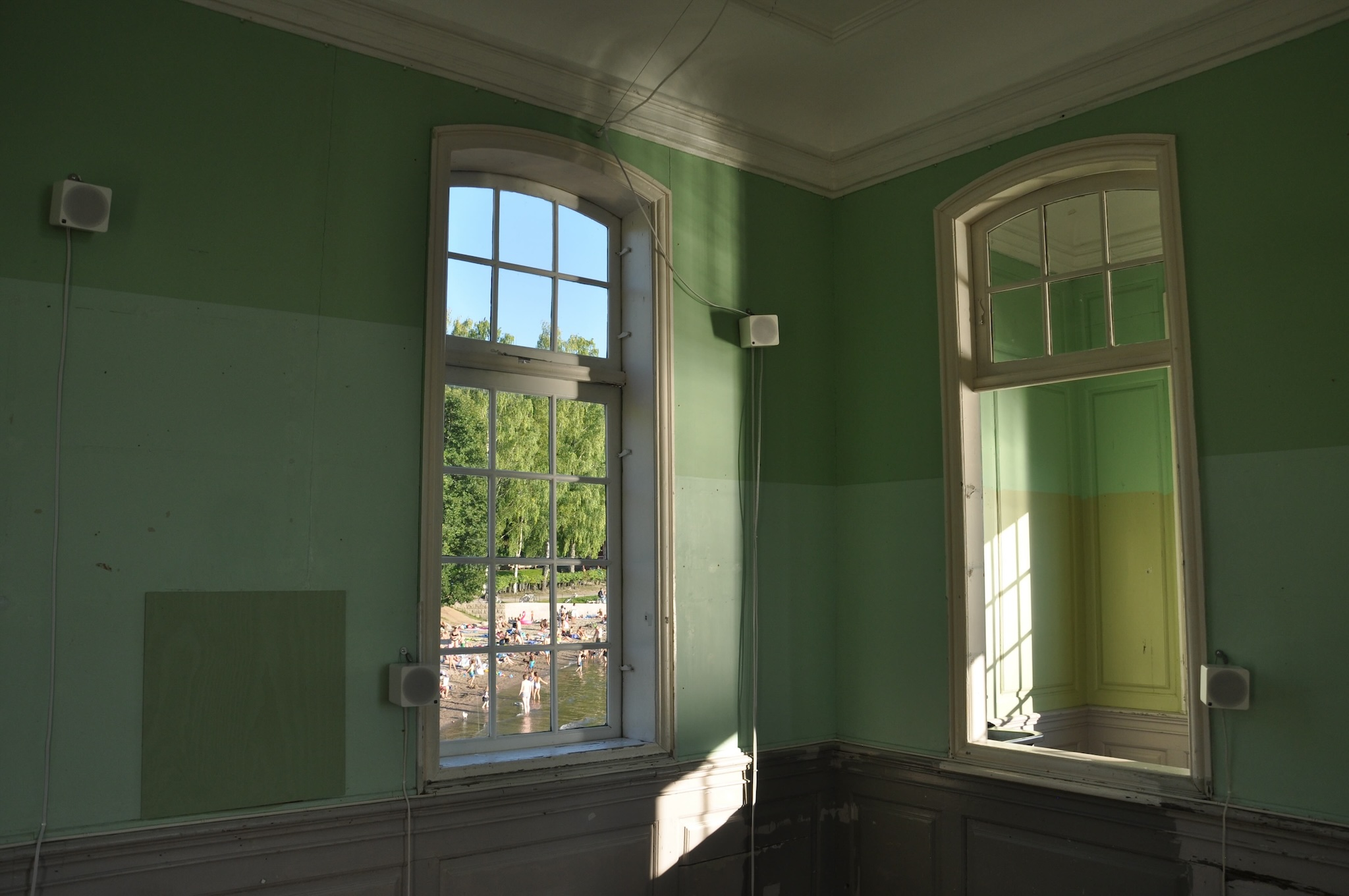 Unlike the later installations, this work was installed inside a building. Although the installation was not strictly outdoors, the age of the building meant there was no sound isolation and the outside environment easily penetrated through the walls and windows, and blended with the sounds of the installation.