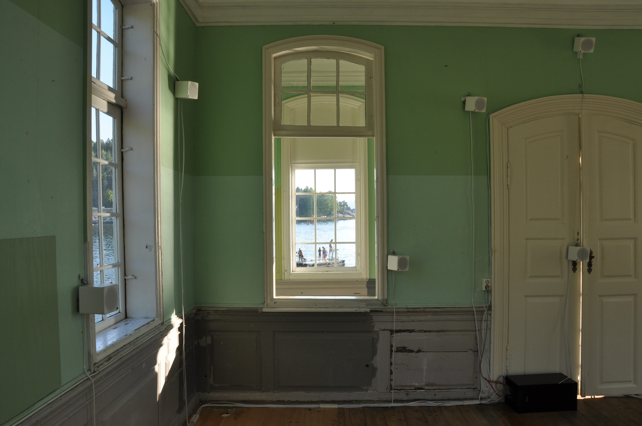 “Sansing i Strandsona” was a 3-D sound installation sensing the environment of Hvervenbukta - a small bay on the east side of the inner Oslo Fjord. The work was installed inside a beach pavilion dating from 1765 and was played back over 24 small loudspeakers arranged in a 3D dome. “Sansing i Strandsona” played from the 10th to the 16th of August 2020. The work was approximately 20 minutes long and ran in a continuous loop.