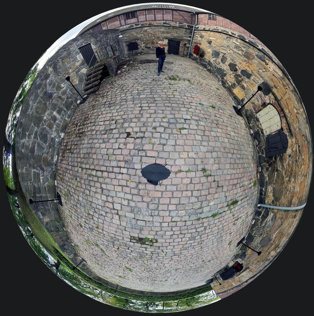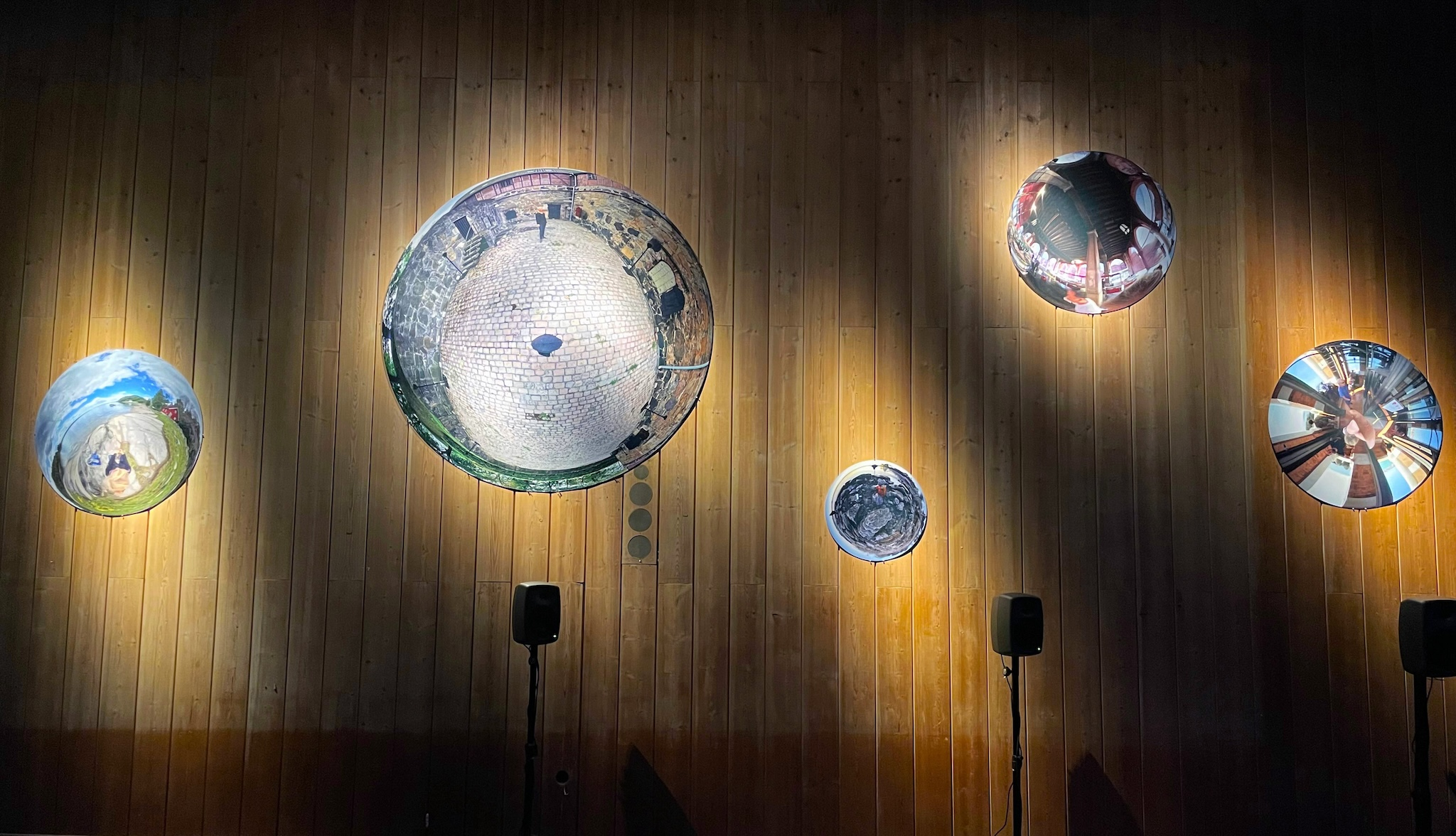Concerning these images, in collaboration with Henrik der Minassain, who is the exhibition curator at the Old Munch Museum, we felt it necessary to add relevant visual information on the walls of the massive Foredragsalen. For most of the case studies, I recorded the site with photographs taken on a consumer 360 camera. When shown in world-view, these images seemed in keeping with the ambisonics dome and the 3D nature of the exhibition sound space. The five images were large 360-degree photos taken at different sites featured in what the audience would hear.