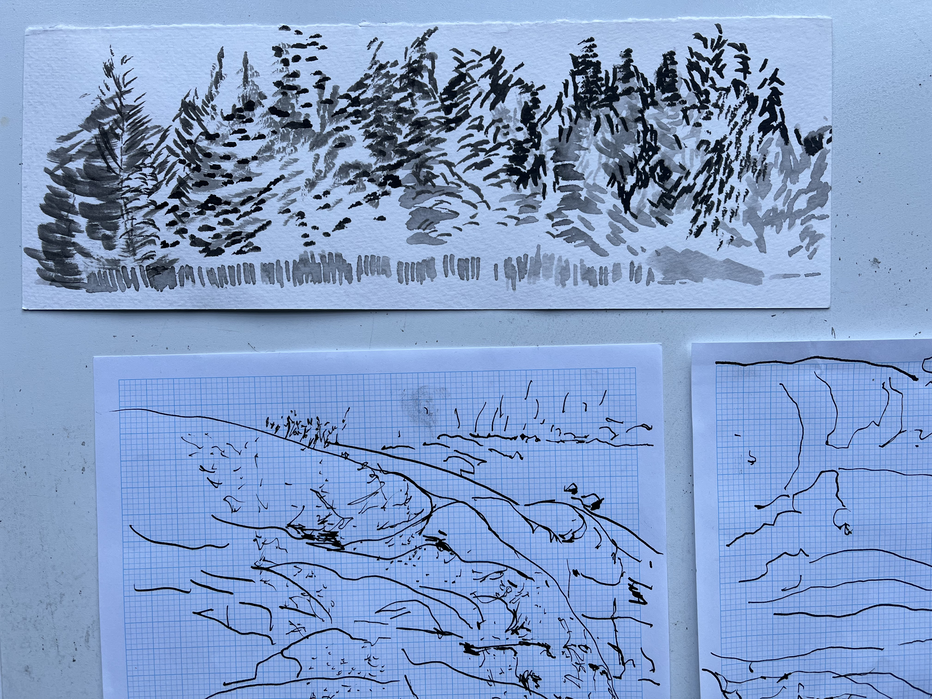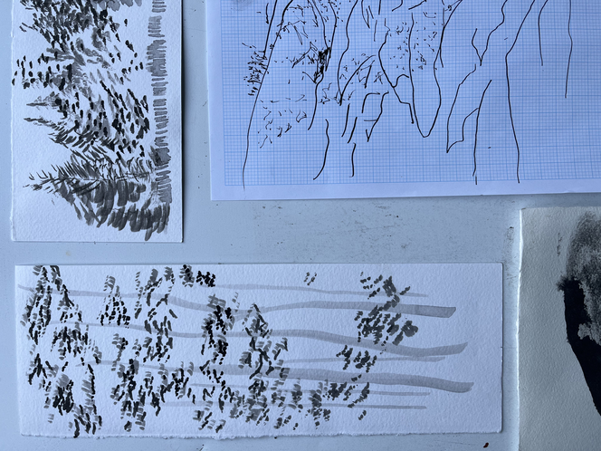 forest petition, ink on kozo paper, drawn daily over a month and walked with on the 16th Septemeber 2023 - part of our Voicing gestures walk to support the referendum.