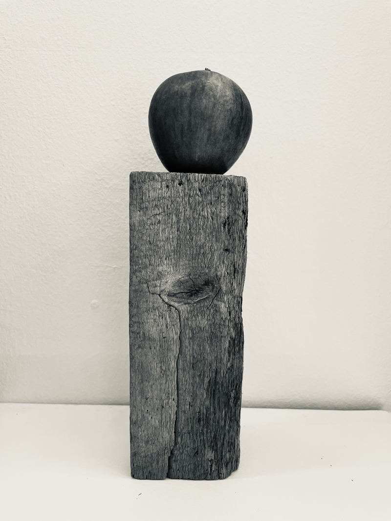 There i also placed an apple on the wood and placed it beneath a tiny, tiny scroll with an excerpt of a letter Hanna Arendt wrote on her wedding. To a man she did not marry that day.