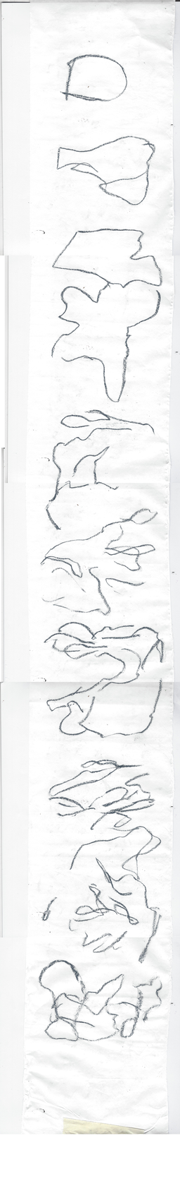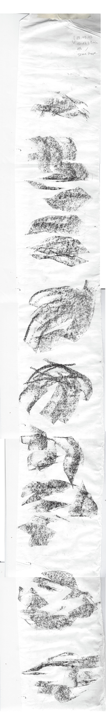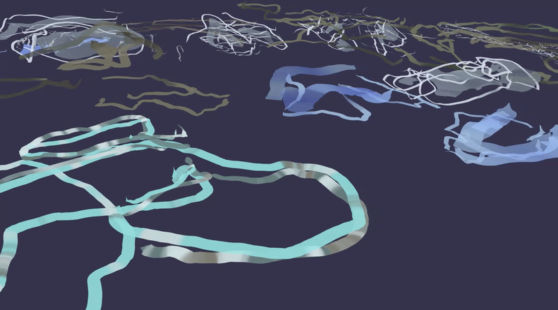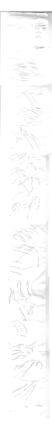 Her most recent work involves experimenting with different methods to depict landscape and movement while walking, focusing on the perception of surroundings, depicting shapes, structures and movement in relation to space. In order to perform this practice she has designed a drawing machine, a tool on which one can draw on paper scrolls continuously while walking. This method of drawing is then adapted into drawing and painting mediums as well as animation and 3D VR-Landscapes which transform and combine the drawings into an interactive visual experience. .