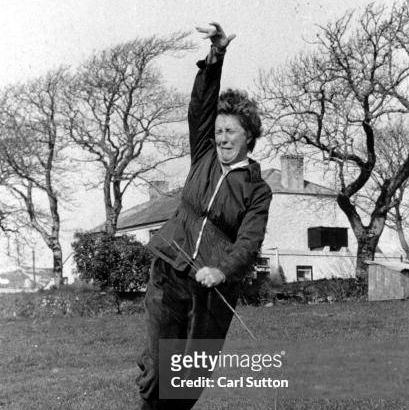 This is a written transcription of the gestures of Catherine Bent, a water diviner at work, in Cornwall (UK) as captured by British Pathé in 1954.
