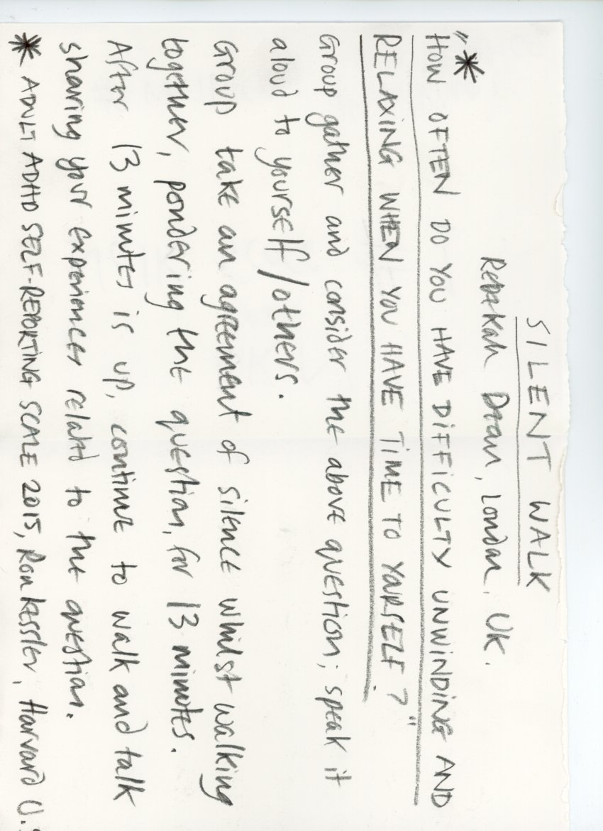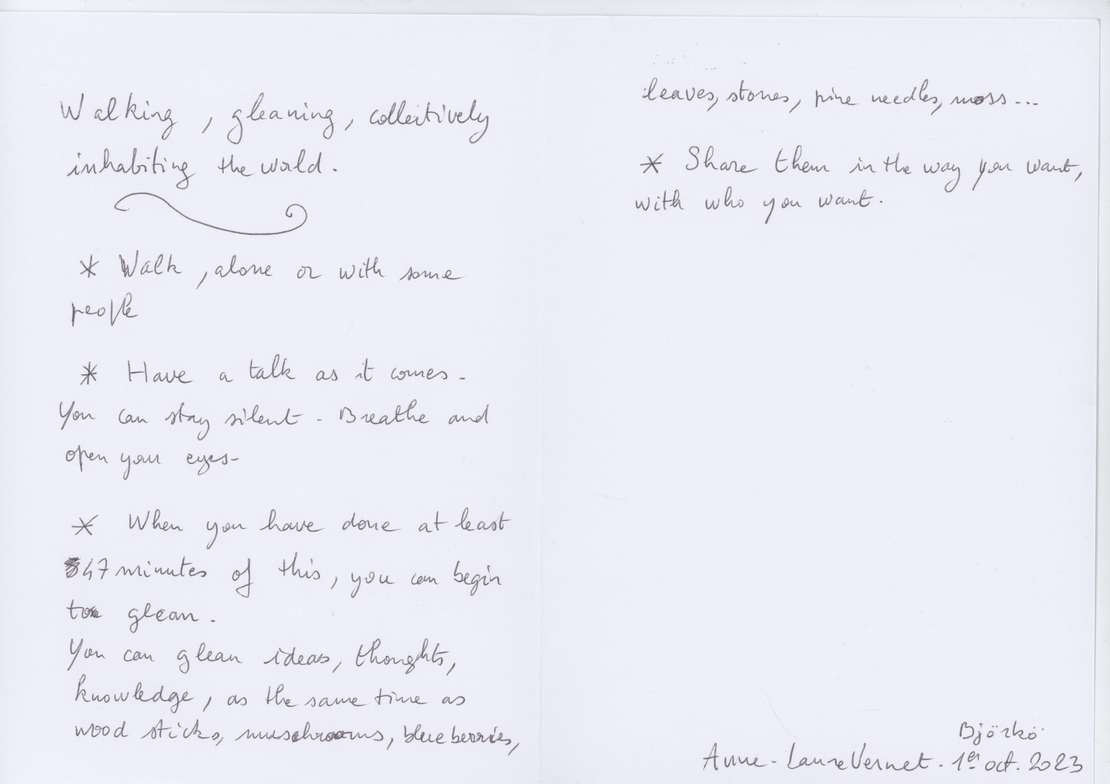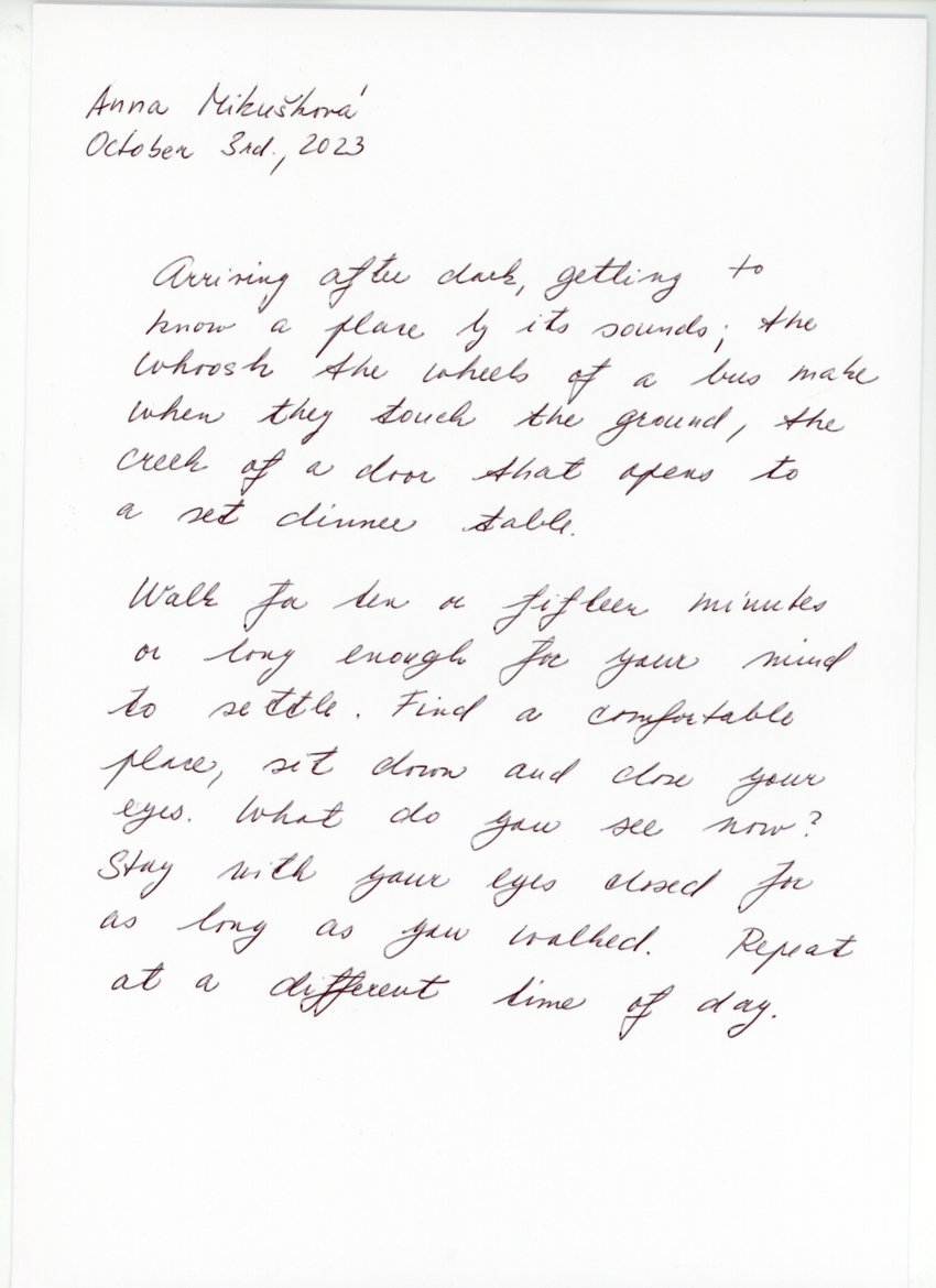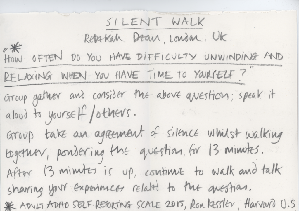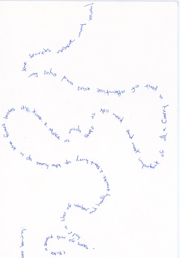 For WAP, the curators shared some historical 1960s walking scores by Anna and Lawrence Halprin, Yoko Ono and other Fluxus members. We then made 15 min-workshops to encourage each artist to formulate their own walking score with pen/pencil and a blank paper as tools. Other scores were made post residency. You find some of them here on this page. Please try them!