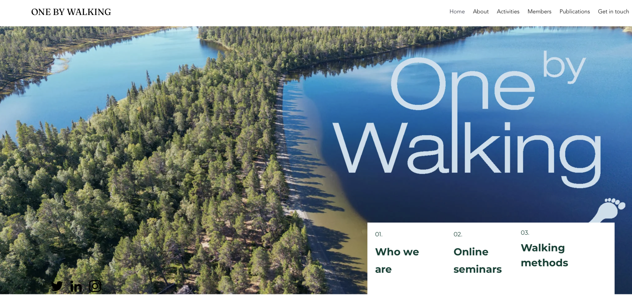 One by walking brings various disciplines together, we arrange workshops and do joint publications. The guiding principle behind the network is that interventions in artistic performance can collaborate with scientific researchers working on methodologies of movement. Our researchers are searching for new ways of working with sustainability, landscape management, art, and pedagogy. Steering group onebywalking