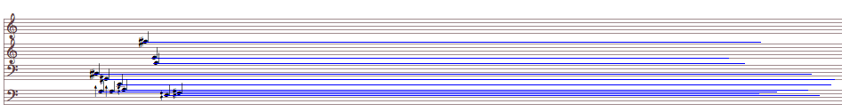 Settings were adjusted by trial and error to find more than 200 unique chords for the installation. The chords were exported as a Csound score for synthesis with samples. The samples were flutes (normal, breathy sound or flutter), and strings (sul ponticello, sul tasto, and high harmonics). To maintain as much as possible of the original sound characters, samples were automatically selected for a minimal transposition interval.