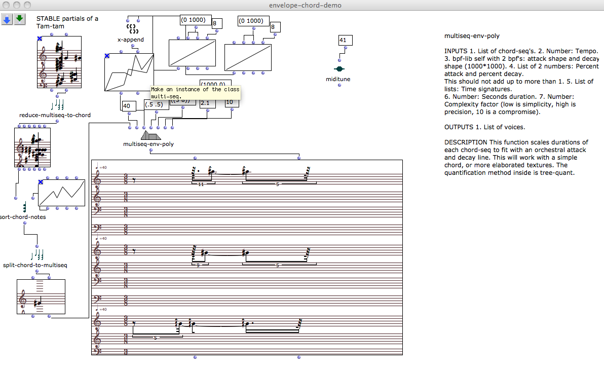 Through work with Open Music, I implemented methods I had so far used on paper, and found new ones, benefiting from the power of rapid calculations from curve shapes. The Open Music envelope functions are doing the same thing. Envelops for attack and decay are drawn.