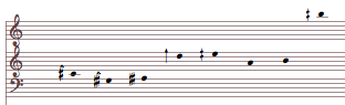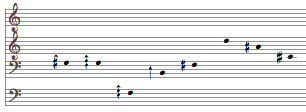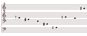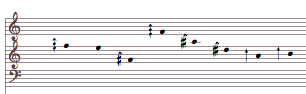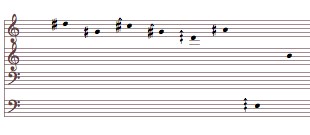 A resulting chord can be approximated to notation. The harmonization will still use the more precise overtone transpositions. Pitches will move in parallel with the voices in these fragments.[4]