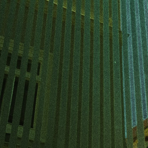 I then began experimenting with ways of duplicating the sliding window filter as a means to walk through time. The photos being taken every five or so seconds, one starts with a time-lapse videos that is quite rapid. I finally applied an additional audio resampling algorithm, using a band-limited sinc filter, to each pixel position, slowing down the time-lapse again, until it reached a point of sufficient calmness. The particular noiseness and somehow inversion of contrast due to the amplification of differences meets another peculiar behaviour—as people walk by Trauttmansdorffgasse, Bürgergasse, and the interiour yard, individual snapshots capture the passersby, while the preceding and successive photo do not show them. The Gibbs effect of the resampling interacts with this situation by letting the people appear as if they were cut of from cardboard, oscillating between darkness and brightness at their appearence and disappearance, giving the impression of these cardboard contours being "raised" or "falling". This combines with a particular illuminated green colour stemming from an unevenness in the camera's RGB gain stages.