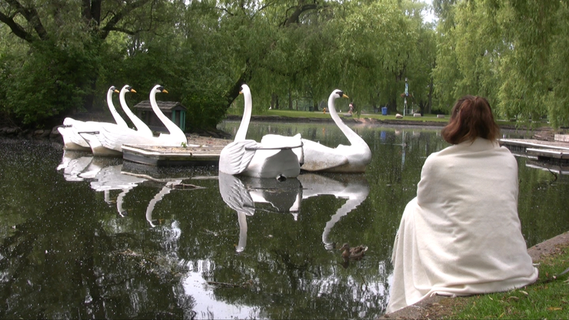 One day in Summer 2010 I sit wrapped in a white scarf and watch boats formed like white swans in an amusement park in Toronto.