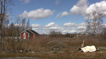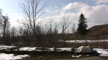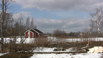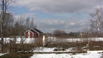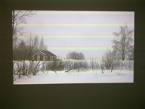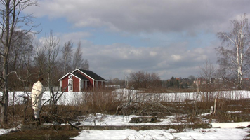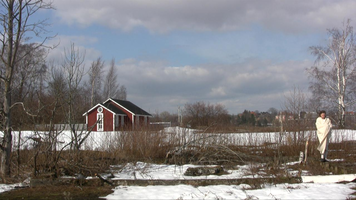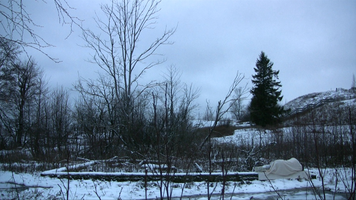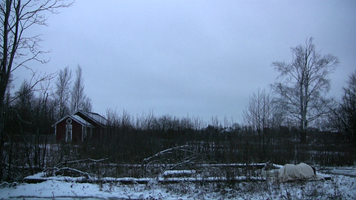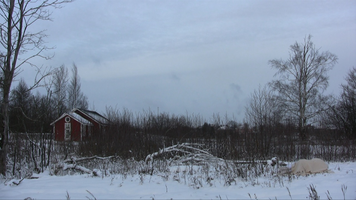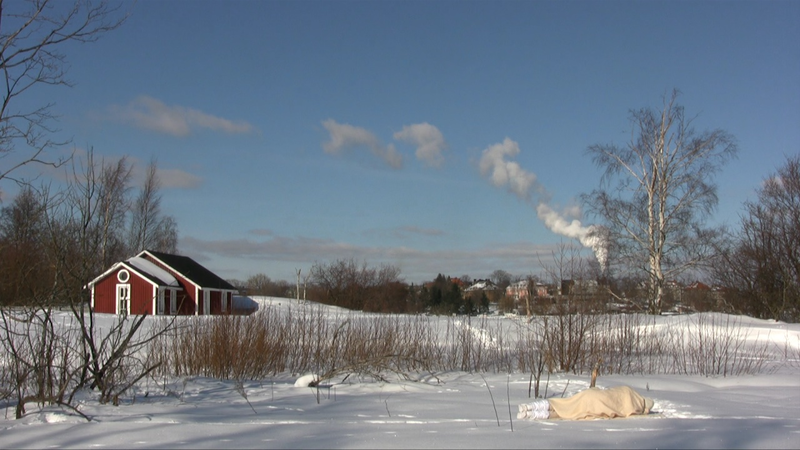 For the first time in a sunny snow landscape. There is so much snow that the place of the camera is hard to choose and wading in snow is difficult. – The first tests I did already yesterday, on Saturday – and already one week ago I walked around looking at the site and checked whether I would find the ”base” of the old building within the snow. I do not know, perhaps this take will be merely a test, too – if I feel like it I will come tomorrow in the afternoon to video film. But I need to find felt boots ( or whatever they are called in English), otherwise walking (rämpiminen?) in the snow becomes too painful…