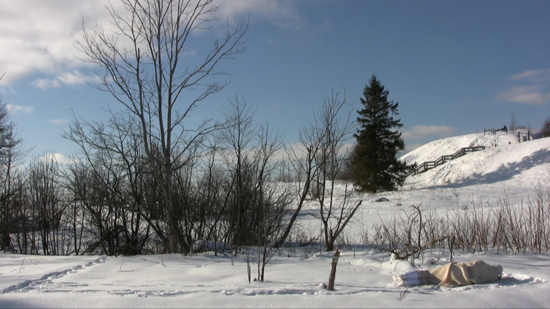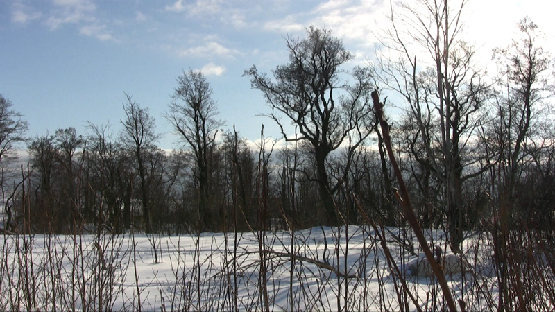 Cold, cold, cold! Wind from North East forms “dunes” of the snow and whips snow in my face. I managed to video film all four directions, but I had to take a break in between – the camera refused to work an required warming up!