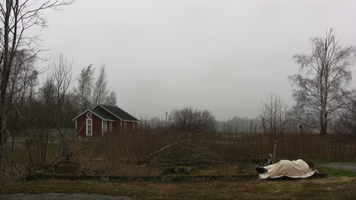 The air is getting cooler, it was raining (rakeita) at times, but only as short downpours. The dark clouds moved fairly quickly, though there is hardly any wind at surface level. A small mouse passed rapidly by between the twigs, there are still inhabitants in the od stone base of the house. The dy and night is still to be video filmed – hm!