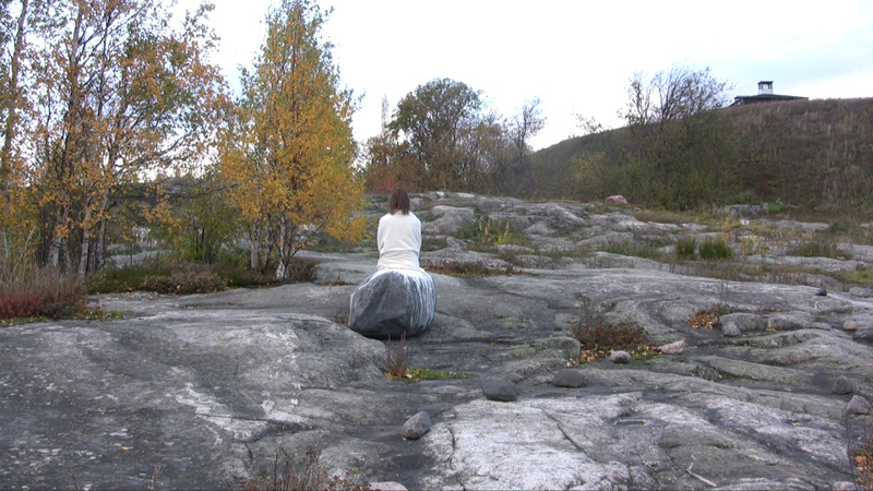 Wrapped in a white shawl I walk and lie down on the remains of the stone base of a building on Harakka Island once a week for a year from 14th February 2010 to 31st January 2011.