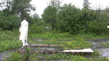 Wrapped in a white shawl I walk on the remains of the stone base of a small building on Harakka Island for a day and night with three hour intervals between 24th June 2011 at 5 pm and 25th June 2011 at 5 pm.