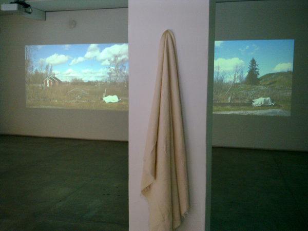 Wrapped in a white shawl I lie on the remains of the stone base of a building on Harakka Island once a week for a year from 14th February 2010 to 31st January 2011.