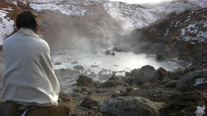I am sitting next to or on the steaming earth in five different places in Krysuvik on Iceland during Easter 2010.