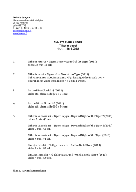 Year of the Tiger 1-2 (long), in the exhibition Harakan Energia, Helsinki 6.6.-1.7.2012