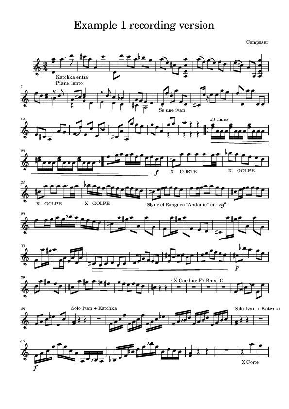 This sesquialtera, hemiola, or polyrhythmic ambivalence between 3 and 2 is a distinctive feature not only of American fandangos but of a big part of the Andean folklore. This rhythmical cellule took an important place in my research after these exercises.