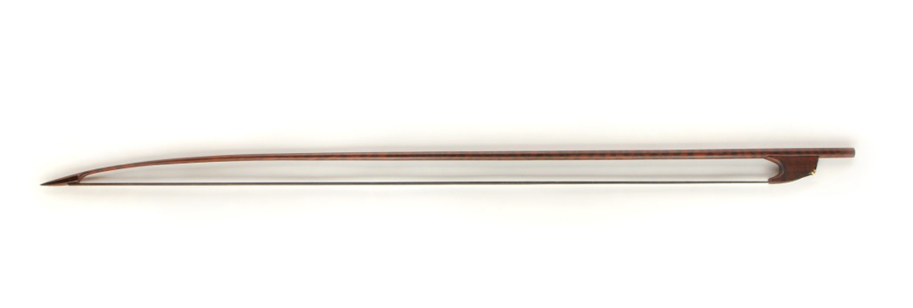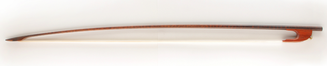 My experience as a performer is that with this grip, articulation changes. The role of the index finger, with its importance in shaping the tone, is somehow shut-off. The sound acquires a more plain character. Since the bow is already light enough, the pinky loses its function as a “weight-taker” of the traditional Italian bow hold. As a result, the weight transmission changes. You cannot put weight on it because the whole arm weight is connected directly to the string. Articulation is to be done rather with bow speed than pressure. Below you can see the pictures of the two bows purchased for the research: