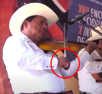 The violinists of Son Huasteco use a wide range of different bow holds. Traditionally, there has been a strong presence of different types of historical French grips (Sanchez 2022, 73) but they are being gradually replaced by the regular Italian modern bow hold. Both bow-holds coexist and there is fluidity between holds, even within the group Los Camperos de Valles. Joel Monroy, for example, has a clear French grip, with the thumb beautifully placed under the nut of the bow (image on the bottom left). Heliodoro Copado placed the thumb on the stick, however, his pinky was flat on the stick, and his middle finger was raised, so that the flexibility of the fingers is also lowered. As a result, his sound neared that of the french-grip (second image below). In a private video made of the Ensemble, it is possible to see Camilo Ramirez, the third violinist of "Los Camperos", using the French Bow grip.