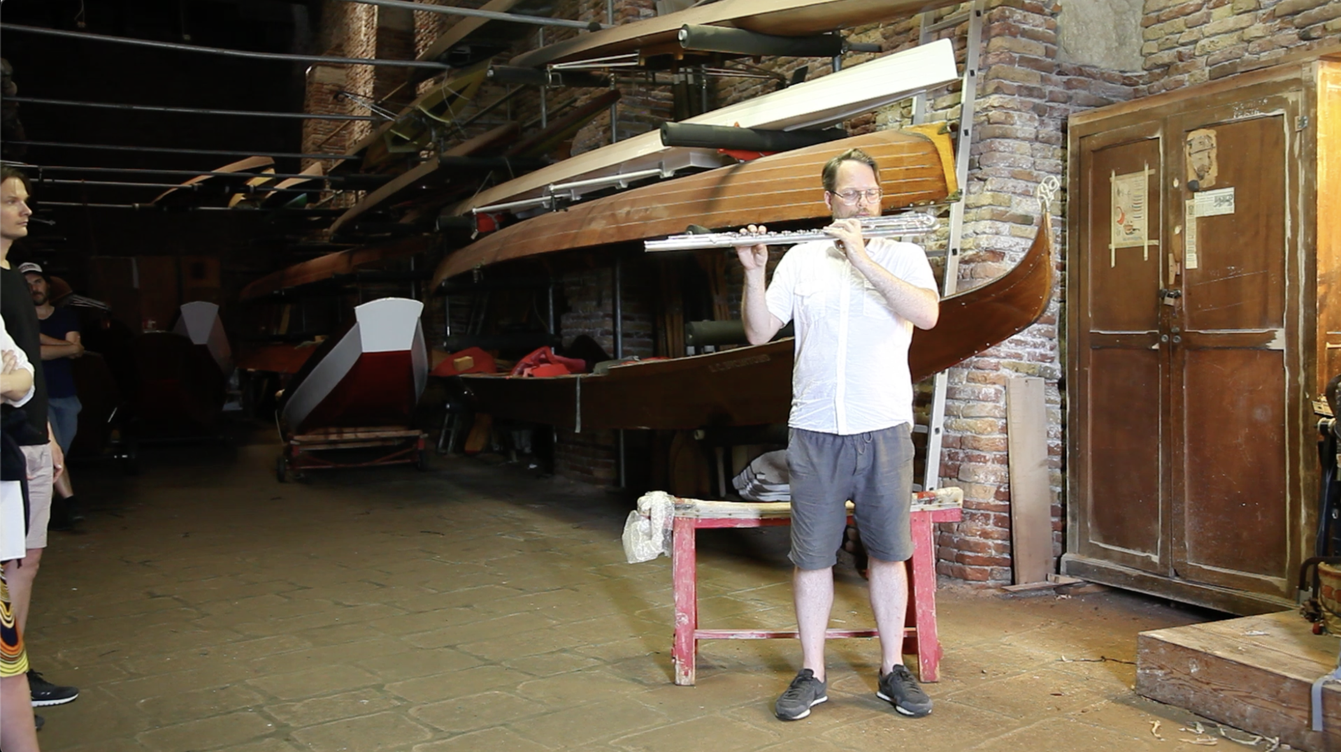 Bjørnar Habbestad performing sixth iteration in boat garage on Zattere during Re:Site (project by Norwegian Artistic Research Programme in Research Pavillion).