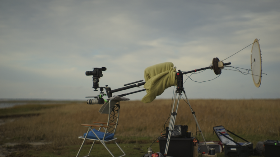 As a way of approaching the tide through listening, a small «impulse response» device; a hollow steal rod with a metal marble, was mounted on to the jib. Every now and then, when the wind shook the jib, the marble moved and clinched against the end-piece, creating an echo. The echo was recorded, a preserved chunk of time, of change, that later could filter the field recordings as a reverb.
