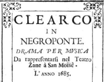 Libretto of Clearco in Negroponte, first edition (Venice, 1685)
