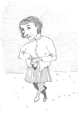 Expositionen består av ett antal texter: huvudtexten om det homoerotiska, att projicera lesbiska begär; och så texten om det auti-auto-teoretiska; kanske ytterligare texter, om den akademiska slumpen kanske. Den består också av min obegränsade pyssel-praktik: en filmad version av den kappa (för info: ”kappan”, den man sveper om kroppen, är här ett ord som används om en textmassa som ska fungera som en omsvepning, en inramning en inledning, till en samling artiklar, i det fall en avhandling utgörs av ex antal artiklar som samlats ihop, jag lockades av idén om en samlande avhandling, en avhandling som är många, men fastnade i inramningen, kunde inte följa spelets regler kunde inte sätta egna ramar, det flöt ut, kappan växte sig in i kroppen, kunde inte skilja kläderna från det inklädda, snö osv…) jag skrev till min avhandling, som totalt kollapsade, som jag skrev ut till ett fanzine; illustrationer av flickor.