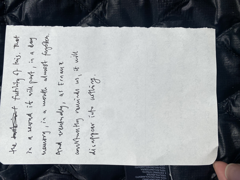 Again, even though I am not on my own this time, I find the focus required for the rocks, the constant assessment of the best path, meditative. Thought is silent. And when we pause and sit on the rock I stare at the the sea and the the sky and the granite and I stare and I stare and I try to sear this moment into my brain. The image of blues and greys. The emotions of calm, contentment and comaraderie. The feeling of the sun and wind on my skin. But it is fuitle. In a moment this moment will be the past, tomorrow a memory. And eventually, like Ernaux constantly reminds us, everything will disappear. But maybe that is not the point. Maybe the point is to generate that positive energy in the universe whilst you have the ability.