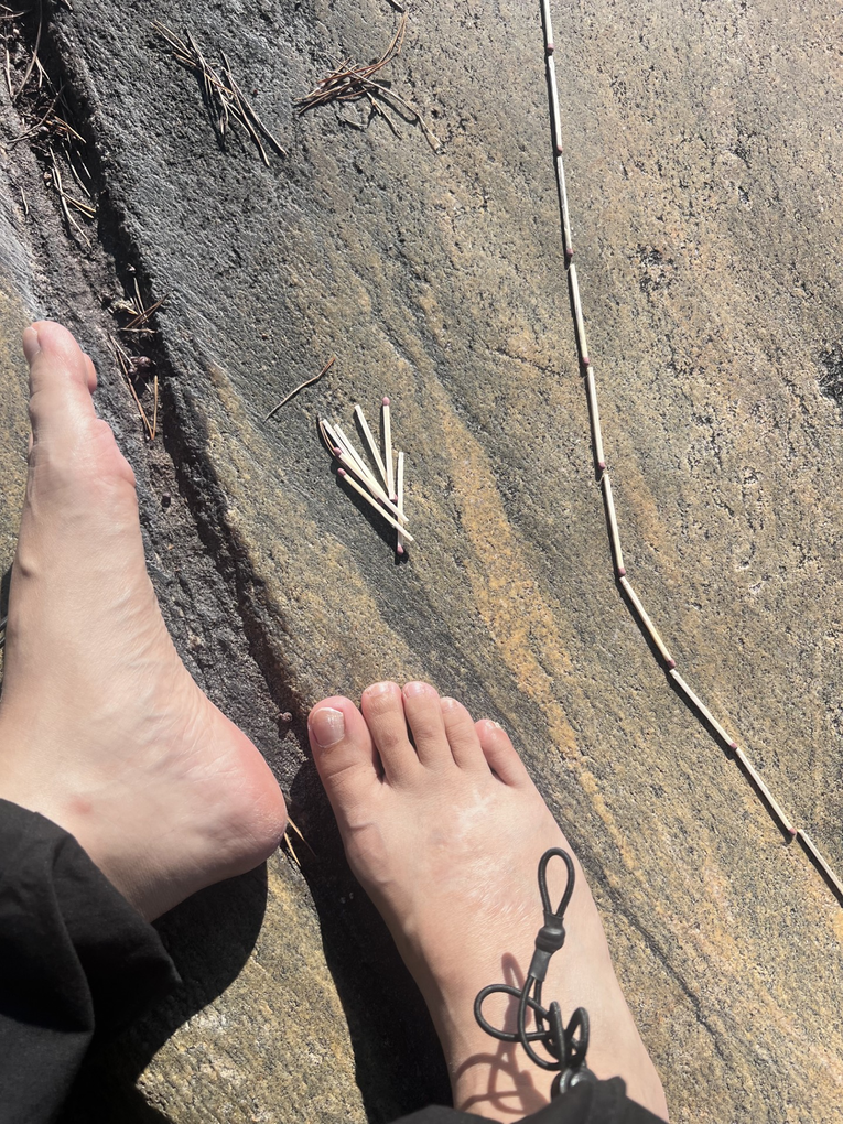 Using a bag of unwanted matches left by a former artist at BKN, I traced a fragile contour line across the cliff by the Baltic Sea - shaped by the wind, the uneven surface, and even ants climbing over it. As the wind constantly blew parts fo the line away, I felt a strange calmness in the imperfection and disruption. It reminded me of how lines in the landscape, like in life, are always shifting, shaped by forces beyond our control. For the ants, this line became an obstacle or a path - something to navigate.