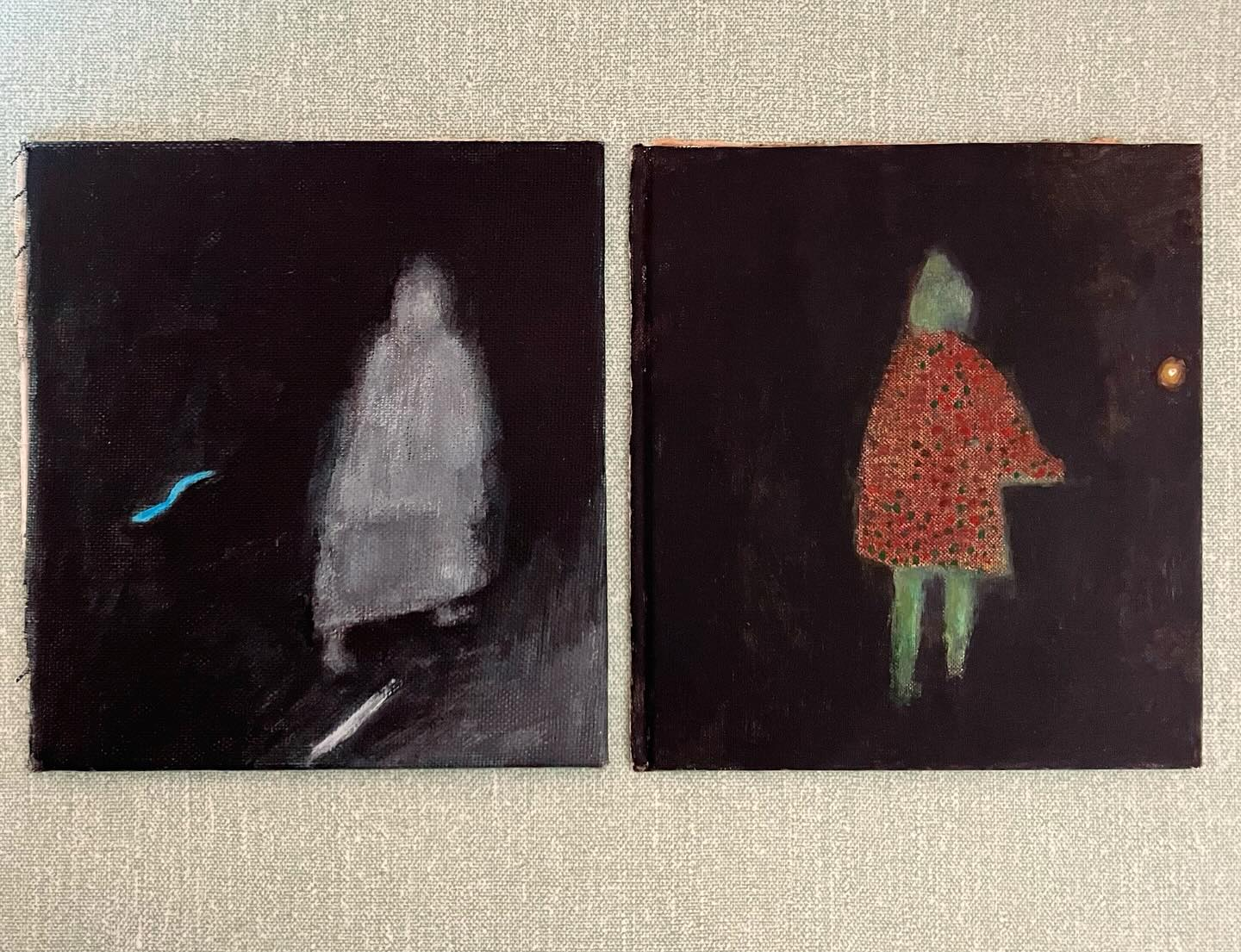 I work mostly with acrylic paint on reclaimed hardback book covers but occasionally and joyfully on canvases that people have no use for any more. I was a guest walker for two weeks with WAP24.