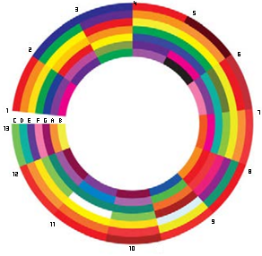 Next to synchronization, color is another big topic when combining the auditory with the visual, as “Color is the first visual experience the brain registers; color is perceived slightly ahead of forms and shapes” (Malmö University, 2014). There is a lot of conducted research on the connection between the tones of the musical scale and the colors of the rainbow[20]. “Ancient philosophers, such as Aristotle and Pythagoras, were among the first to mention [this] clear connection” (Novotna & Ašenbrenerová, 2021)[21]. See the following image as found in How the Lion Learned to Moonwalk (and other stories on how to design for classical music experiences by the Malmö University, which shows how people throughout history have had their conclusions on this topic (Malmö University, 2014).
