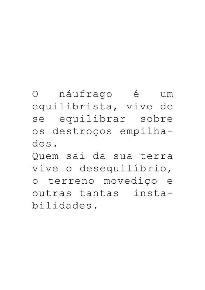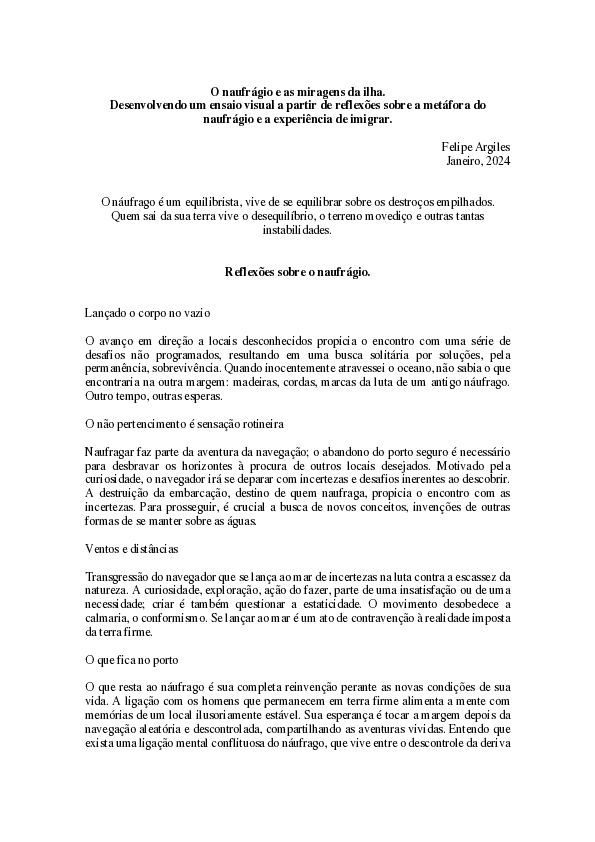 Desenvolvendo um ensaio visual a partir de reflexões sobre a metáfora do naufrágio e a experiência de imigrar.
