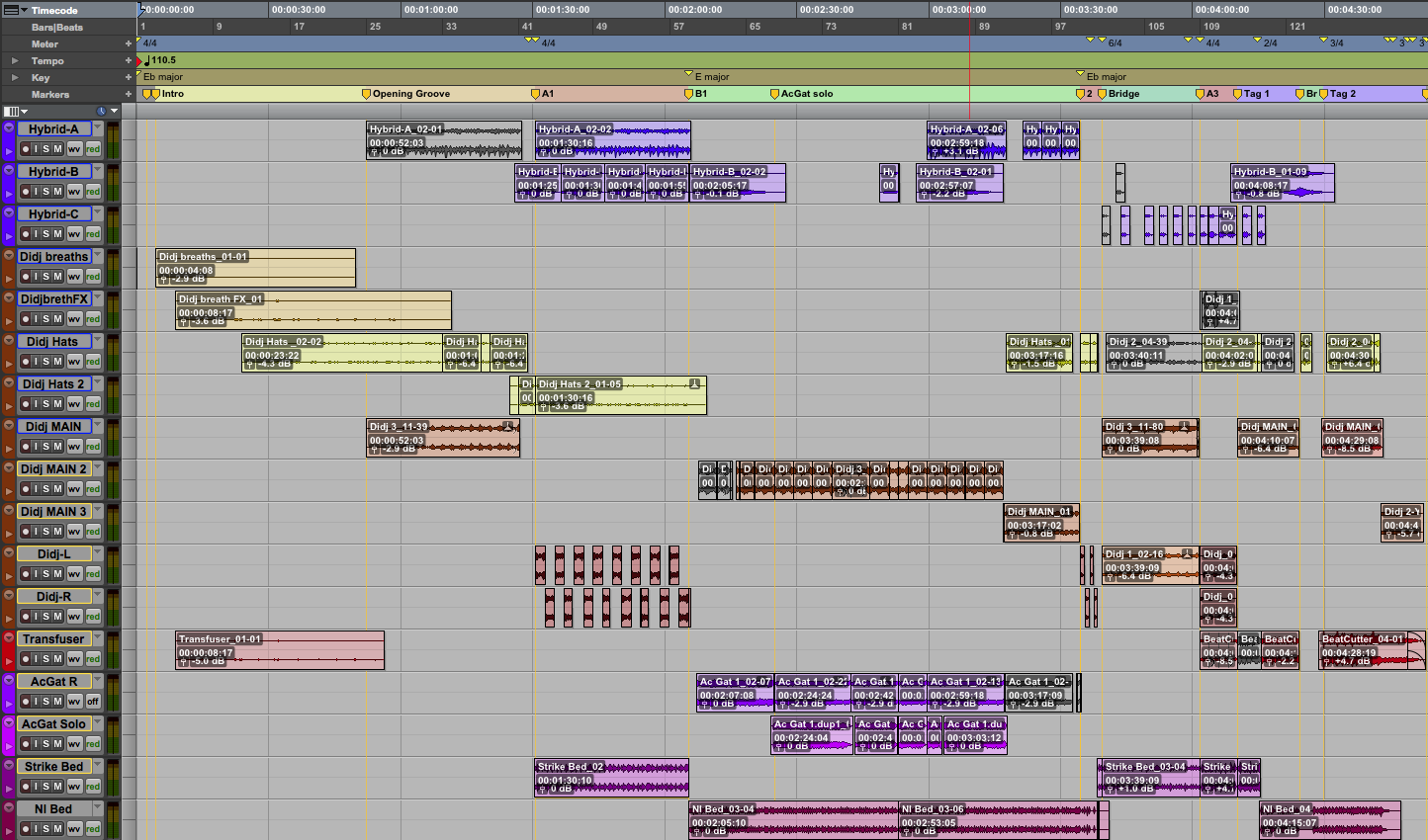 Figure 7: Transfuser, didj loops and rearrangement in Pro Tools.