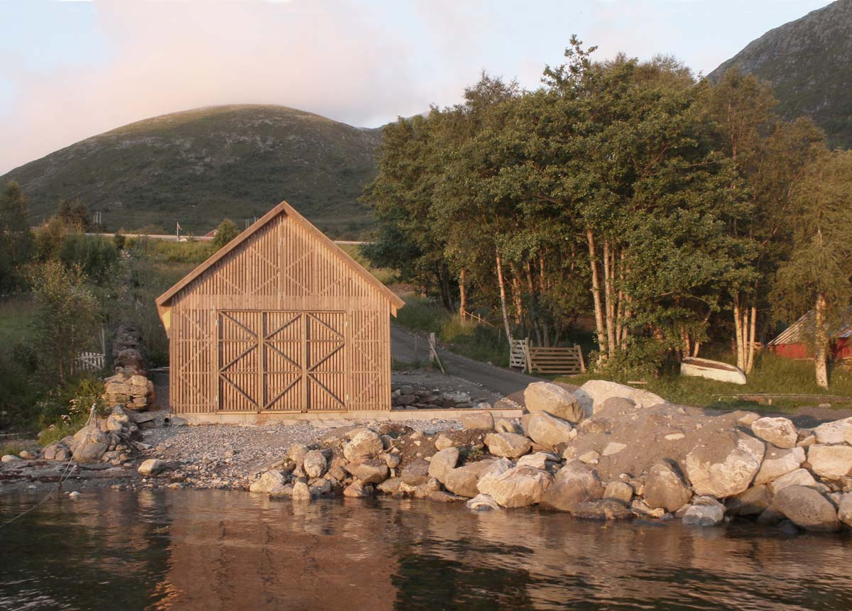 The Boathouse in Haddal was built, in two weeks, in the summer of 2012, by a group of 21 architecture students. It is situated between the fjord, the mountains and the sea in Sunnmøre, on the west coast of Norway. The boathouse is designed by the student group, Rallar Arkitekter, at that time 2nd year students, from the Norwegian University of Science and Technology.