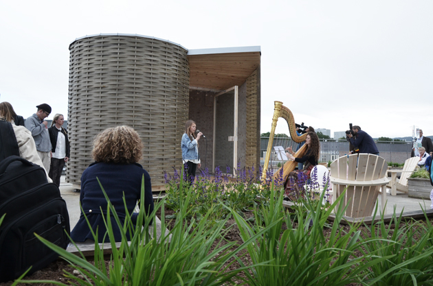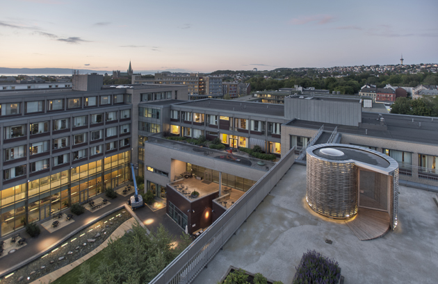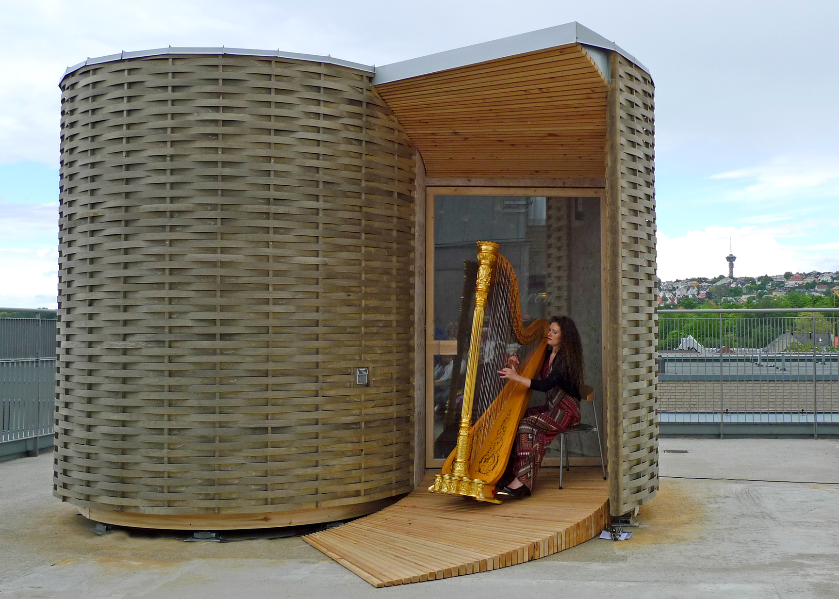 FRIrom is an independent, conditioned 9 sqm wooden pavilion, located on a roof terrace of the Women and Children’s clinic at St. Olav’s Hospital, Trondheim. FRIrom seeks to be a place with a good atmosphere, where relatives can find peace and feel safe in a vulnerable situation, a place where one can enjoy the silence and act without being restricted by the surroundings.