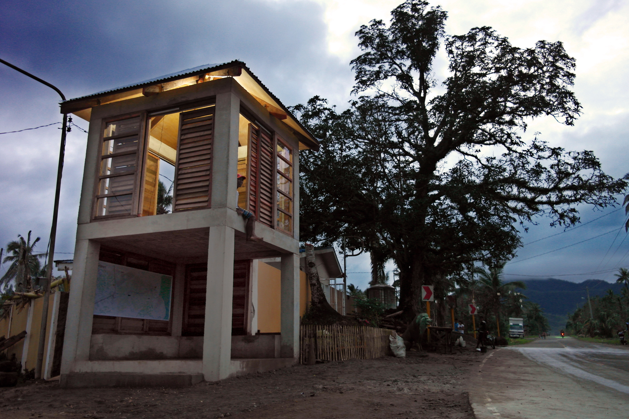 Through an ongoing dialog with the council the idea of an information board with a roof soon developed into a “waiting shed” combined with a tanod outpost above. It´s common for the barangays (villages) to have a building for the local security, often no more than people volunteering for the neighbourhood watch. This is the role of the tanod. The term waiting shed is a local name for a public building that provides shade and a seating area. A natural place to hang up the map. The council expressed a strong desire to combine these two programmes. This typology can be found in many towns and villages across the Philippines.