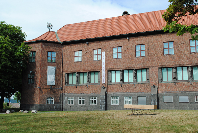 In the early summer of 2014 three architect students designed and built a park bench, as a voluntary student project and a gift to the city of Tønsberg, the oldest city in Norway. The park bench is located in the park between Haugar Vestfold Art Museum and the former city library. Haugar is a historic location, been the site of the ancient assembly (Thing) of Haugating and Viking era mounds.