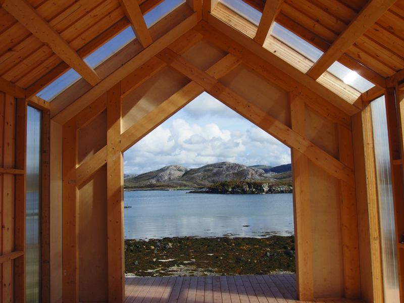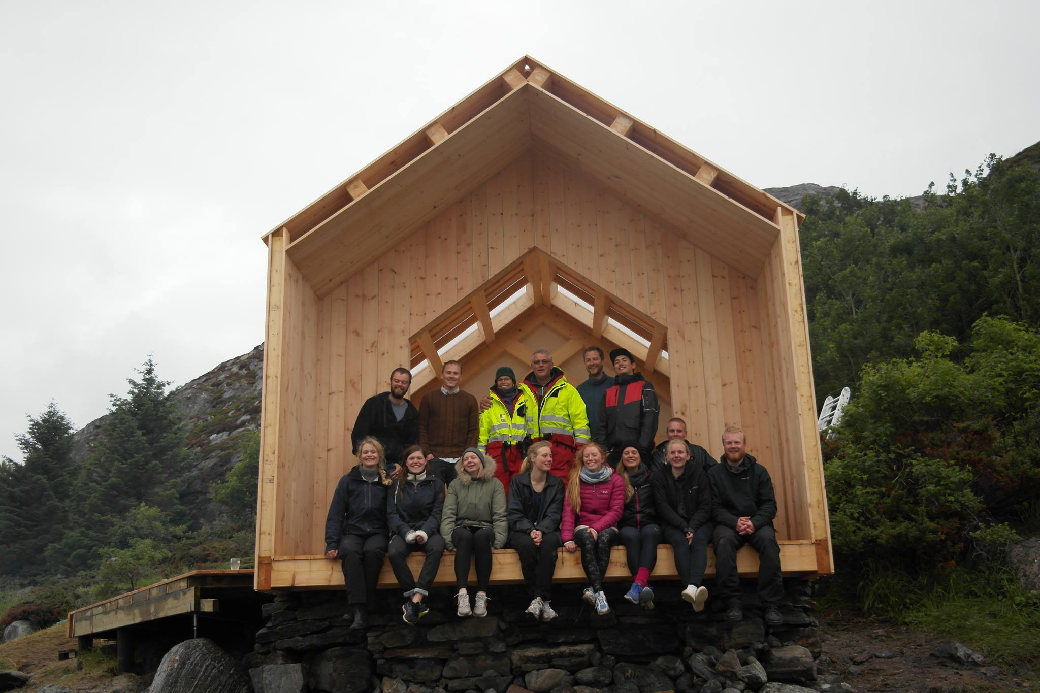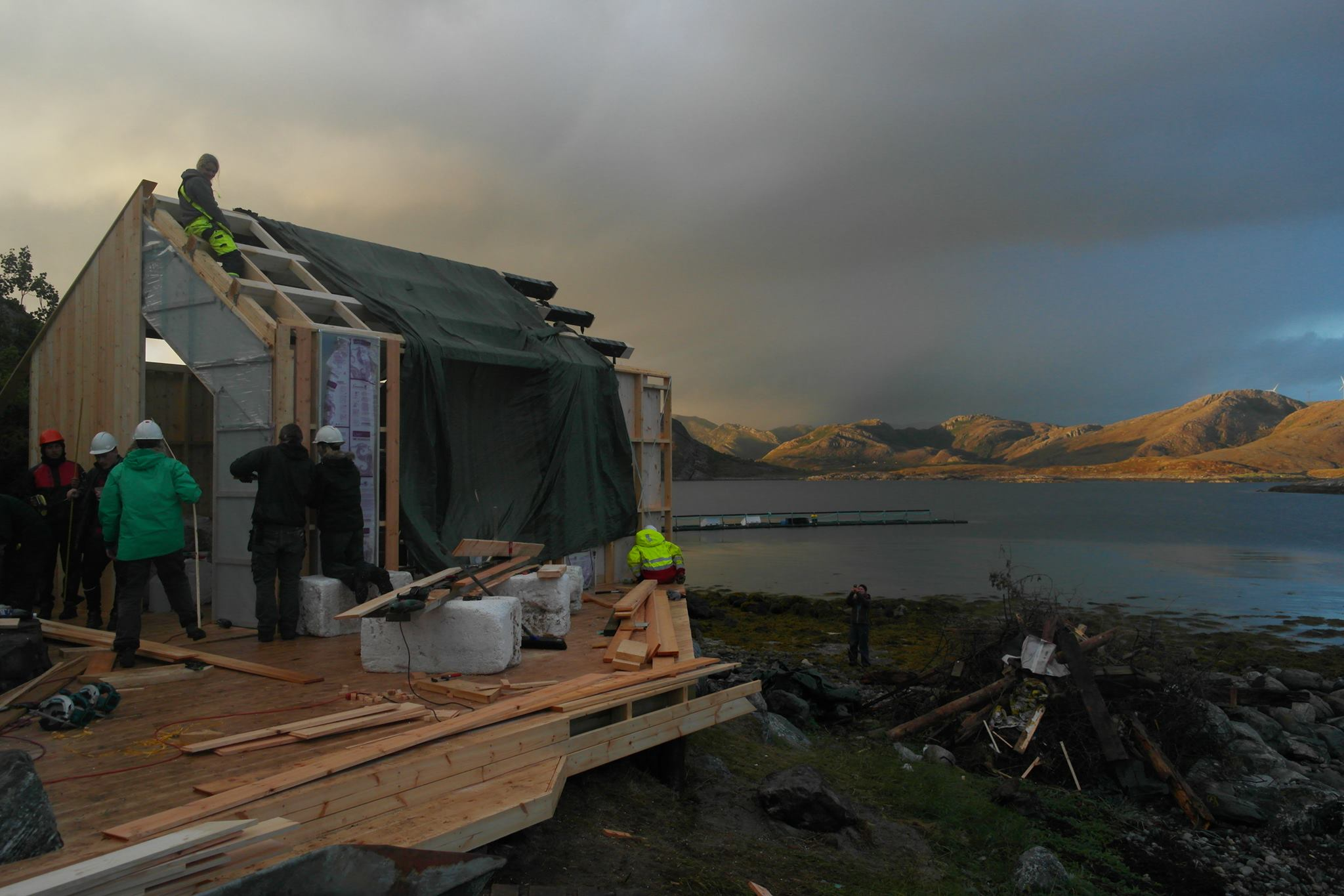 The project started when the family owning the boat house wanted to re-erect the building, and expand both it’s lifespan and future use. The end result was a workshop where fifteen architect students during two weeks in june 2014 came together on Sandøya outside of Bessaker in Fosen, and built the new boat house. With the project, the family and the students wants to make the island more accessible for the commons by inviting those who arrive by sea, as well as making the shoreline and surrounding areas more usable.
